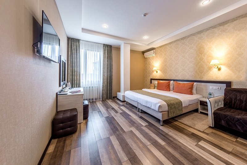 Стандартный улучшенный номер площадью 25 кв м с двумя односпальными кроватями или одной просторной кроватью. Размещение для 2 гостей с возможностью установки дополнительного места.