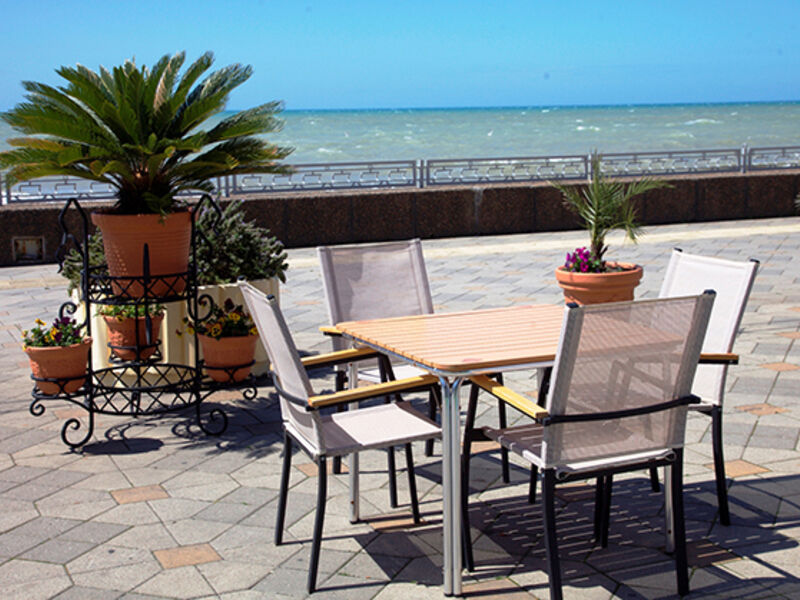 Ребят и взрослых особенно радует море: прекрасный городской пляж расположен буквально в двух шагах от гостиницы. Он оборудован душевыми кабинками для переодевания и туалетами. Шезлонги, лежаки и зонты выдаются в прокат вместе с другим пляжным инвентарём. На пляже есть водные аттракционы и забавы.
