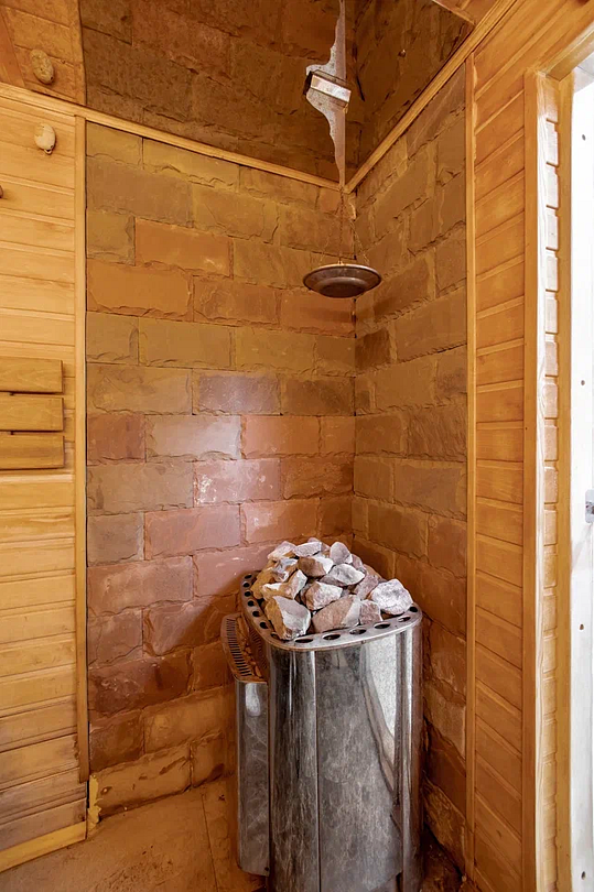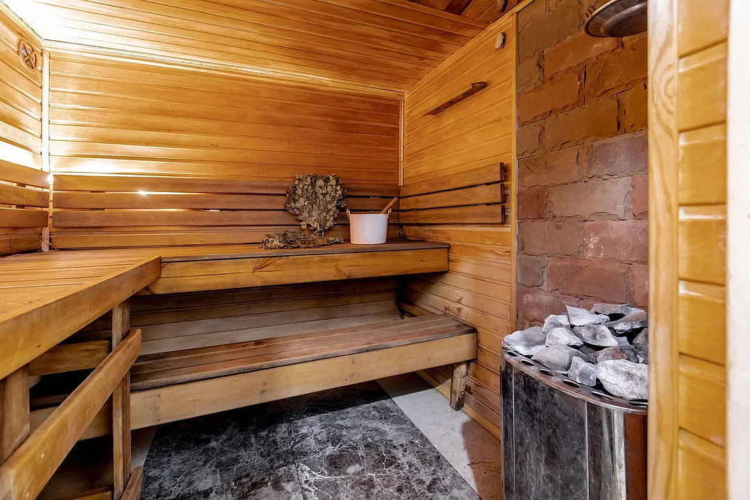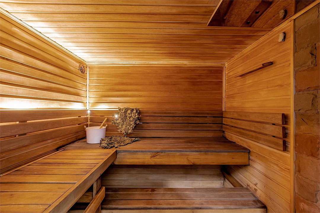 Баня отделана благородным африканским дубом, который обладает уникальным свойством не нагреваться под воздействием высоких температур, что позволяет чувствовать себя комфортно и расслабленно во время парных процедур.Дополнительно можно докупить: