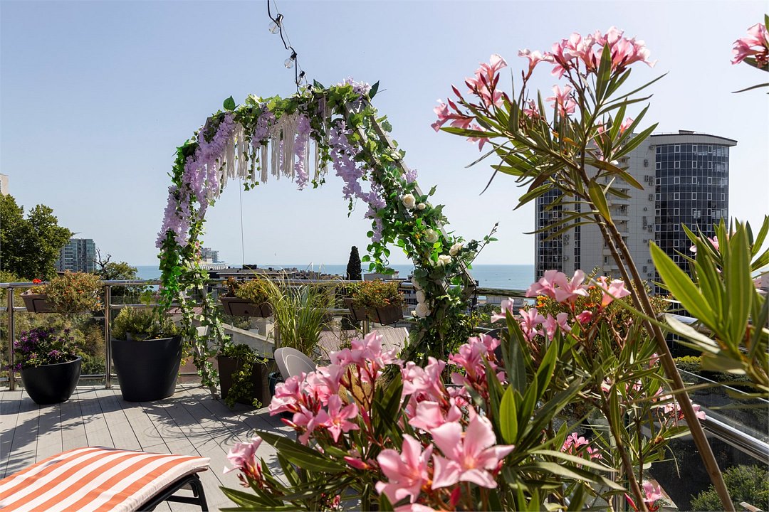 - С бассейном и собственным пляжем