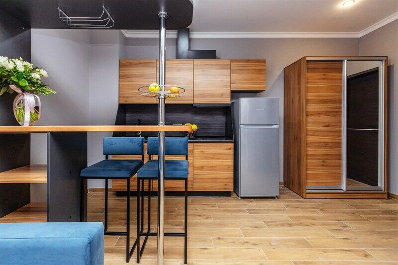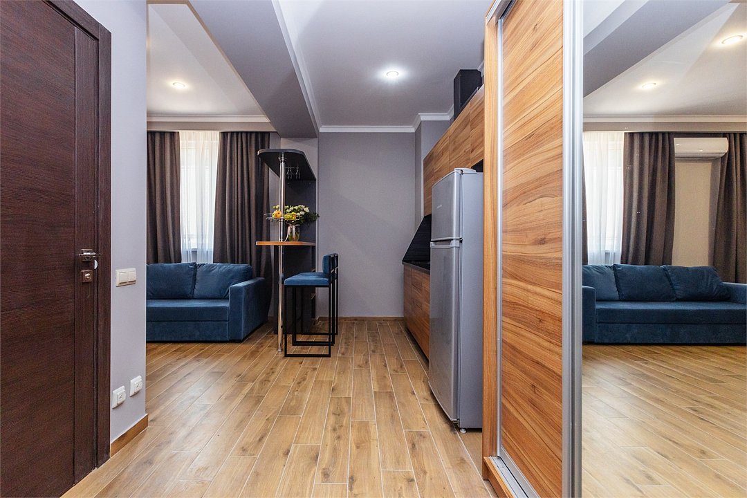 Wi-Fi, холодильник, кондиционер, светильник, фен, плита для приготовления пищи, утюг, ванная комната, душевая кабина, теплый пол, банные полотенца, две односпальные или большая двуспальная кровать, стулья, вешалки, барная стойка, зеркало, набор посуды, чайник, унитаз, раковина, высокие потолки, диван-кровать, раскладной диван, телевизор с плоским экраном, мини-кухня, шкаф-купе, теплые полы, номер для некурящих, морозильная камераВ апартаментах