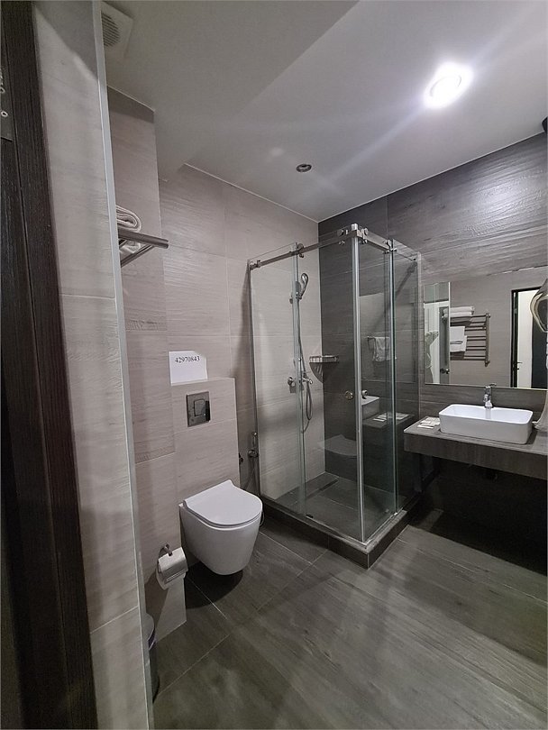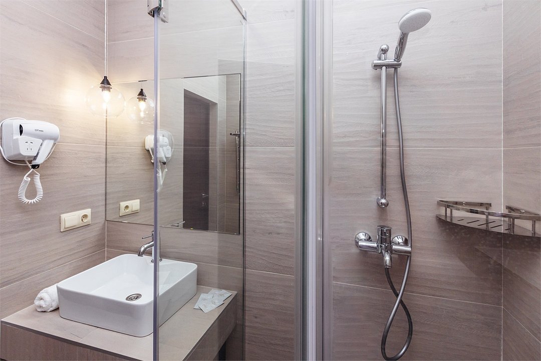 Двухместный номер с собственной ванной комнатой. Чайник, холодильник в номере. Двуспальная кровать или две односпальные. Фен в номере. Взимается депозит 2000рУслуги и удобства