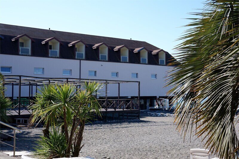 Комплекс состоит из двух корпусов и небольшой пляжной зоны.