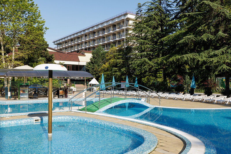 Читать полностьюПансионат «Бургас» имеет в своем распоряжении собственный современный пляж, расположенный в нескольких минутах ходьбы от главного корпуса санатория. Песчано-галечный пляж оборудован лежаками, шезлонгами, навесами от солнца. На территории пляжа есть спортивно-оздоровительный комплекс, набережная, медицинский пункт, душевые, зоны для переодевания, детская площадка, уличные тренажеры и кафе.