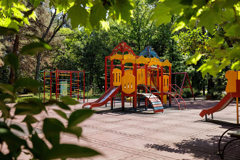 Современный Детский городок уютно расположился в парке пансионата «Бургас».