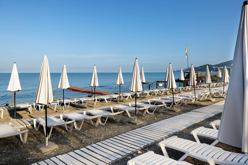 Инфраструктура: лежаки, зонтики, шезлонгиУдобства на пляже (туалет, душ)