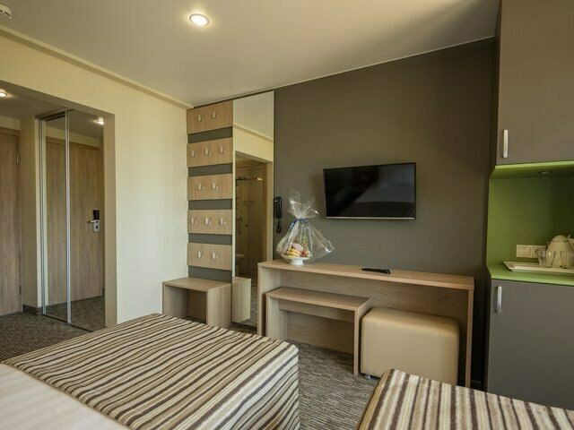 Номер оборудован системой кондиционирования, ЖК-телевизором, мини-холодильником, феном, сейфом, телефоном, чайной станцией.