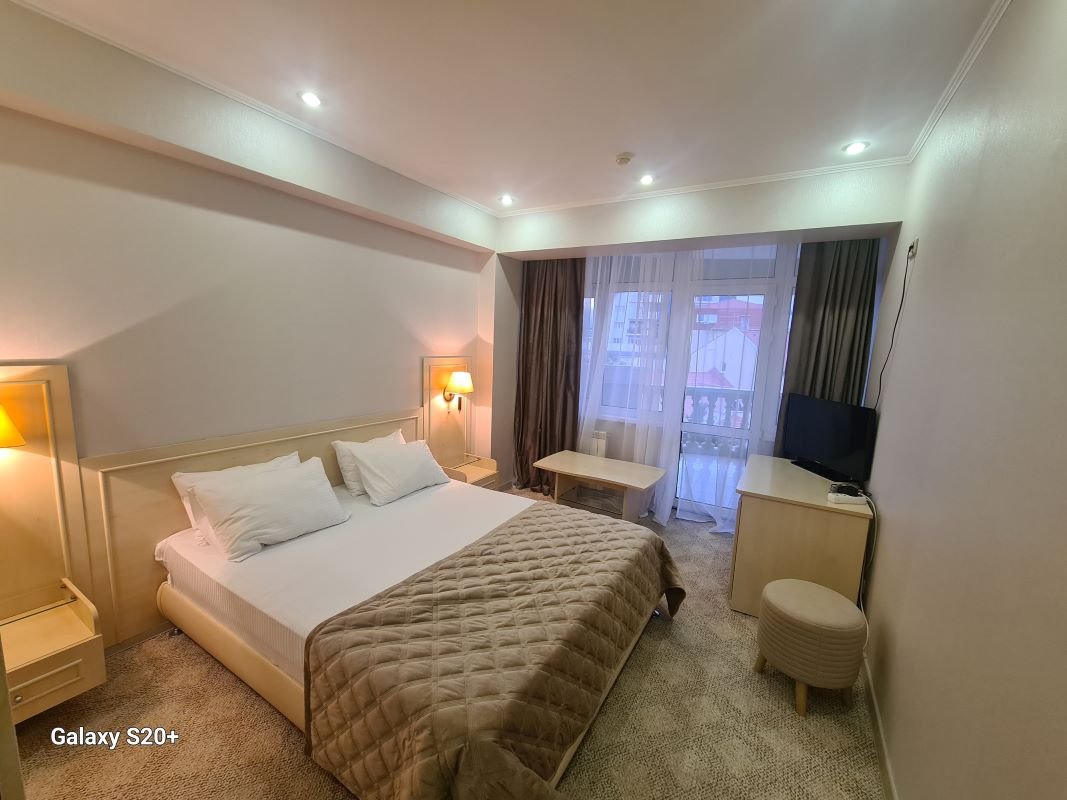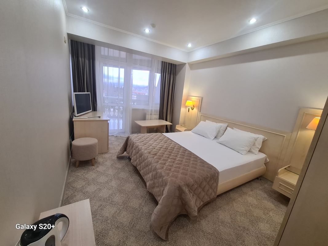 Стандартный однокомнатный номер идеально подходит для размещения 2-ух человек, оснащён всем необходимым для комфортного проживания, а так же балконом, с которого открывается прекрасный вид на город.В номере