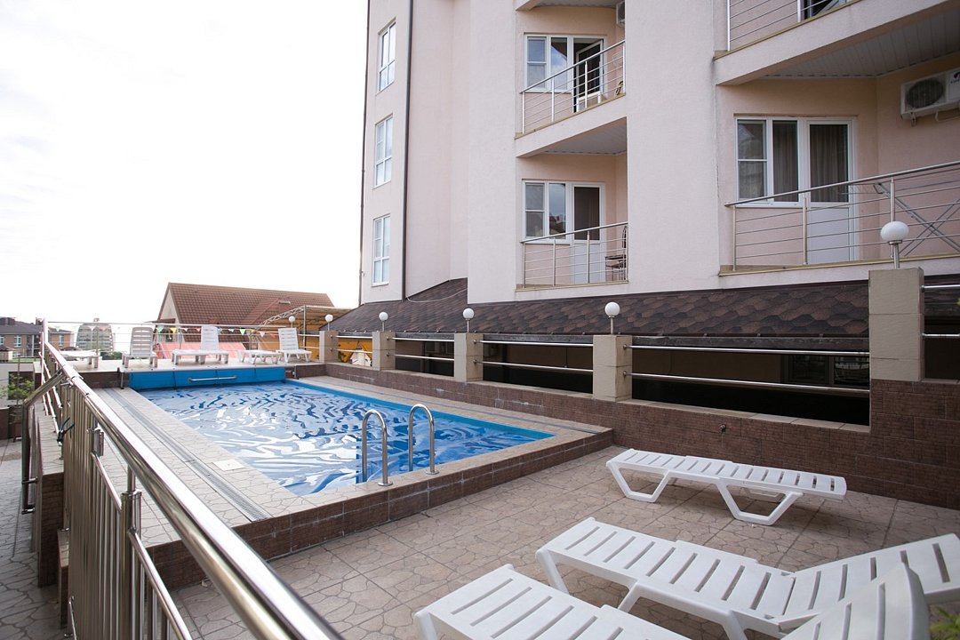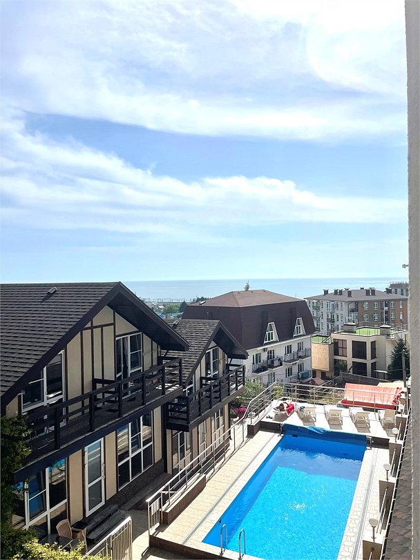 Аппартаменты площадью 45 кв.м с 2-мя балконами. Вид на бассейн и на фруктовый сад. В номере: кухня с диваном и спальня.Услуги и удобства