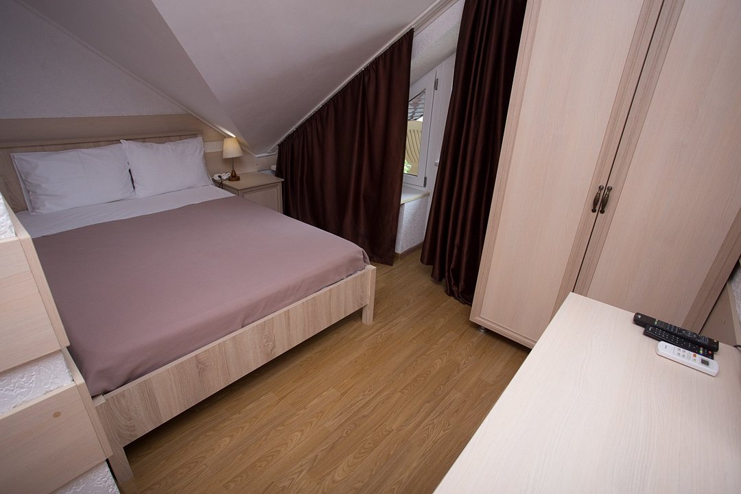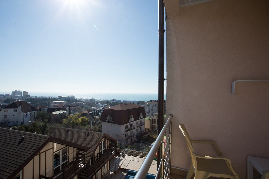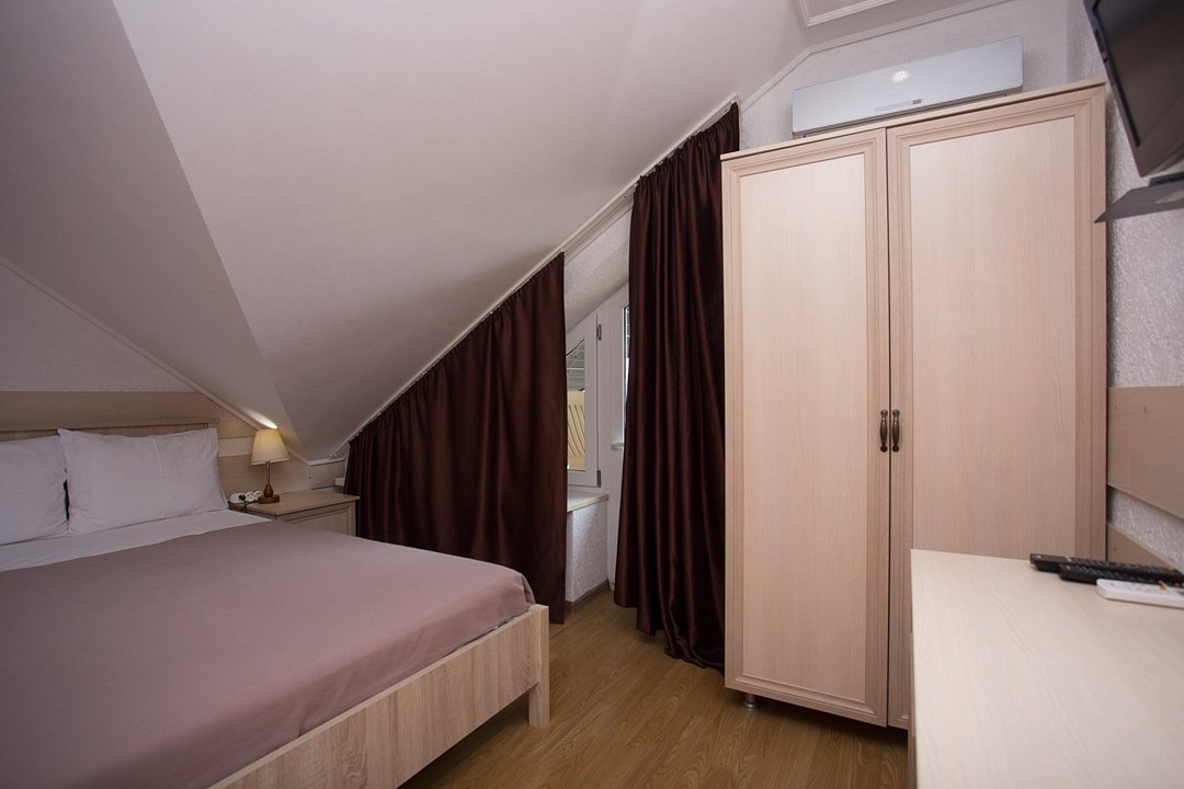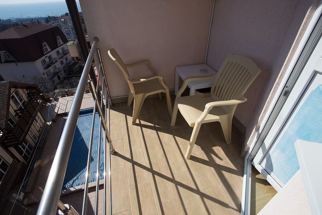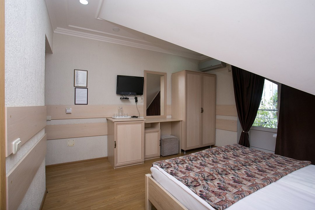 стандартный номер мансардного типа, 25 кв, 4 этаж, большой балкон с видом на горы и боковой вид на море.Услуги и удобства