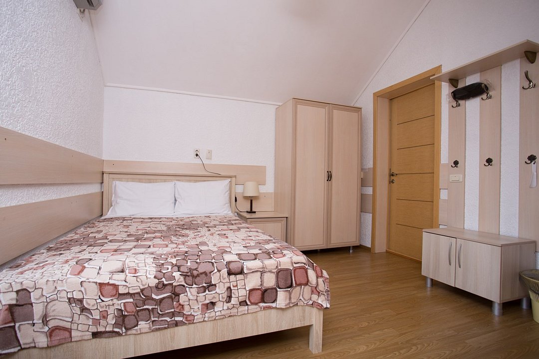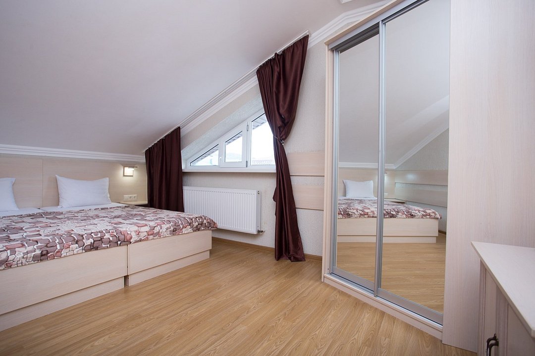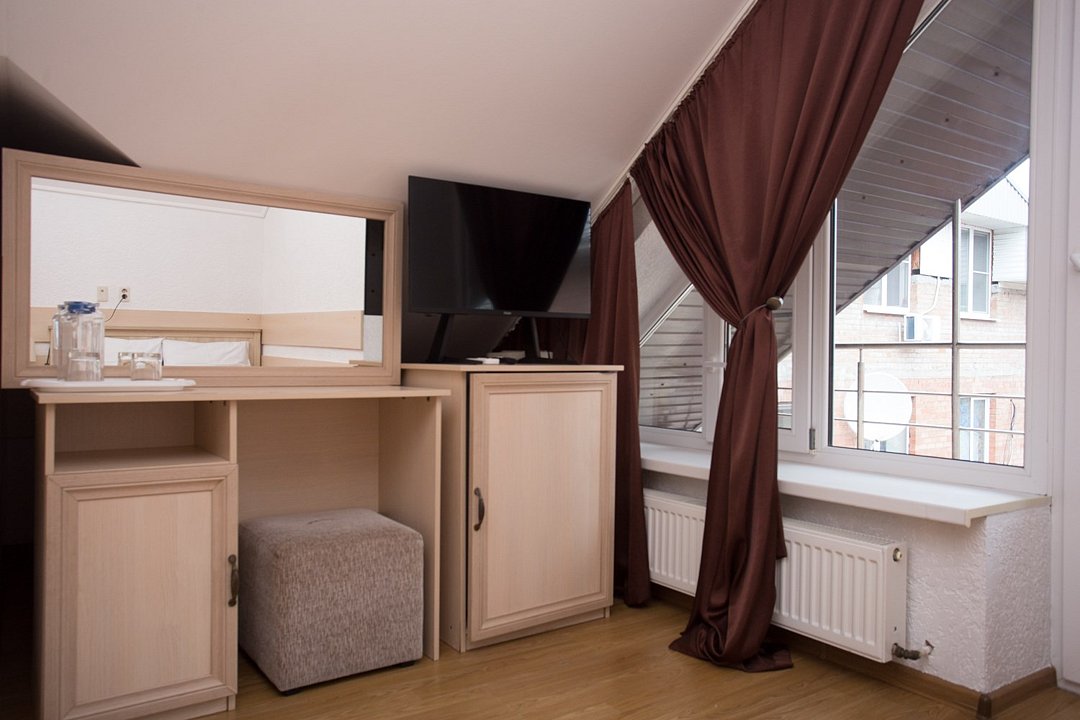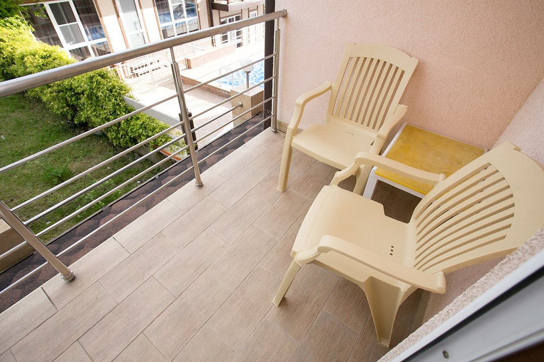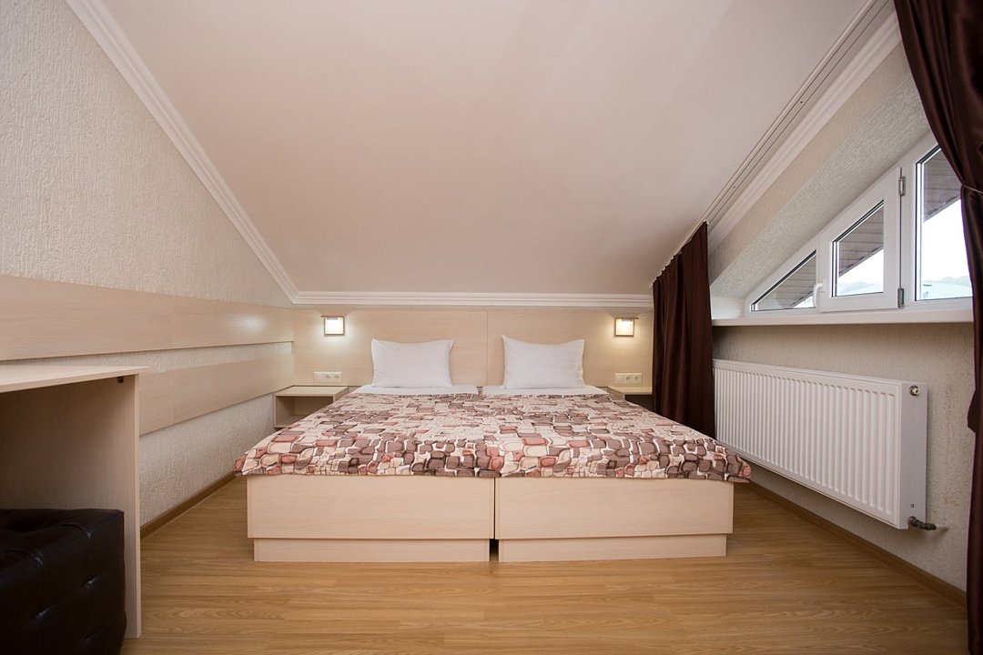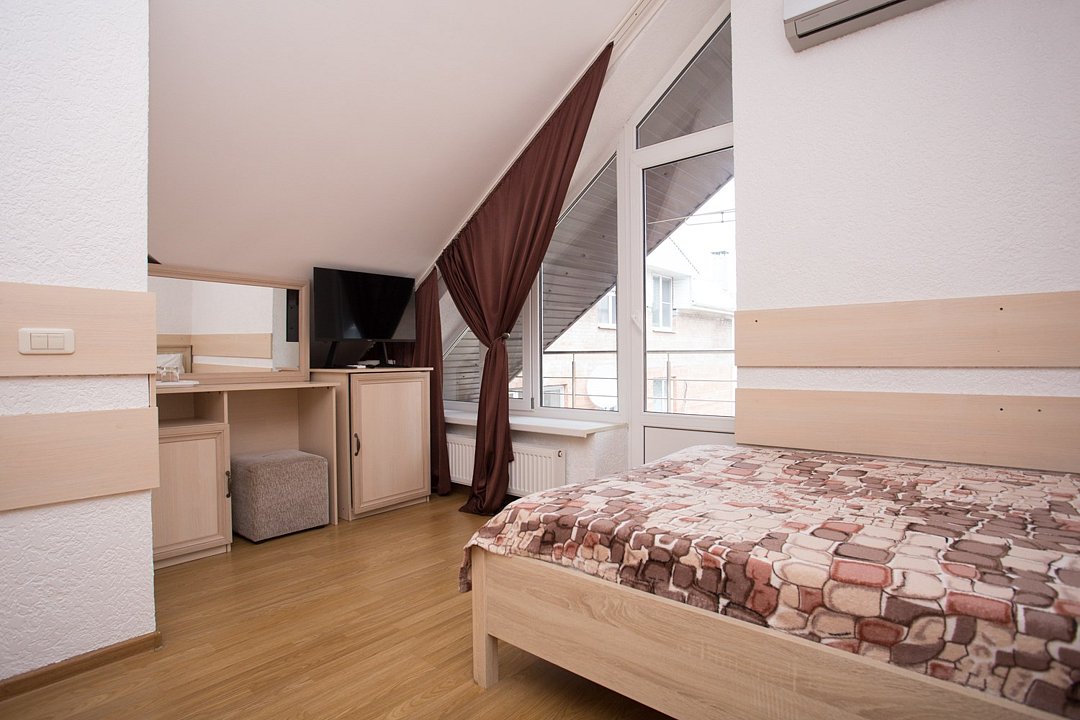 стандартный номер мансардного типа, 25 кв, 4 этаж, большой балкон с видом на горы и боковой вид на море.Услуги и удобства