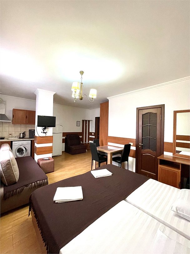 1 семейный номер без балкона: S- 65 кВ, кухня, 2 комнаты, с/у В номере: кухня, плита, посуда, холодильник, кондиционер, 2 телевизора, стиральная машина, фен.Услуги и удобства