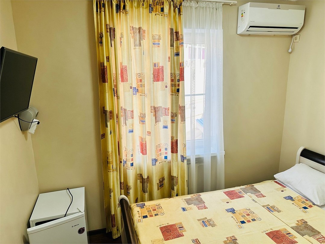 телевизор, кабельное телевидение, Wi-Fi, холодильник, фен, двуспальная кровать, шкаф для одежды, вешалки, унитаз, раковина, душ, вид во двор, стол, тумба, сплит-система, гостиничная парфюмерия, двухъярусная кровать, частный двор, мылоВ гостиничном номере