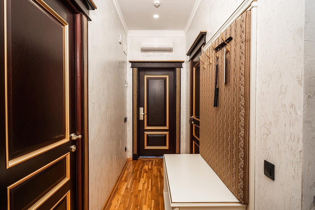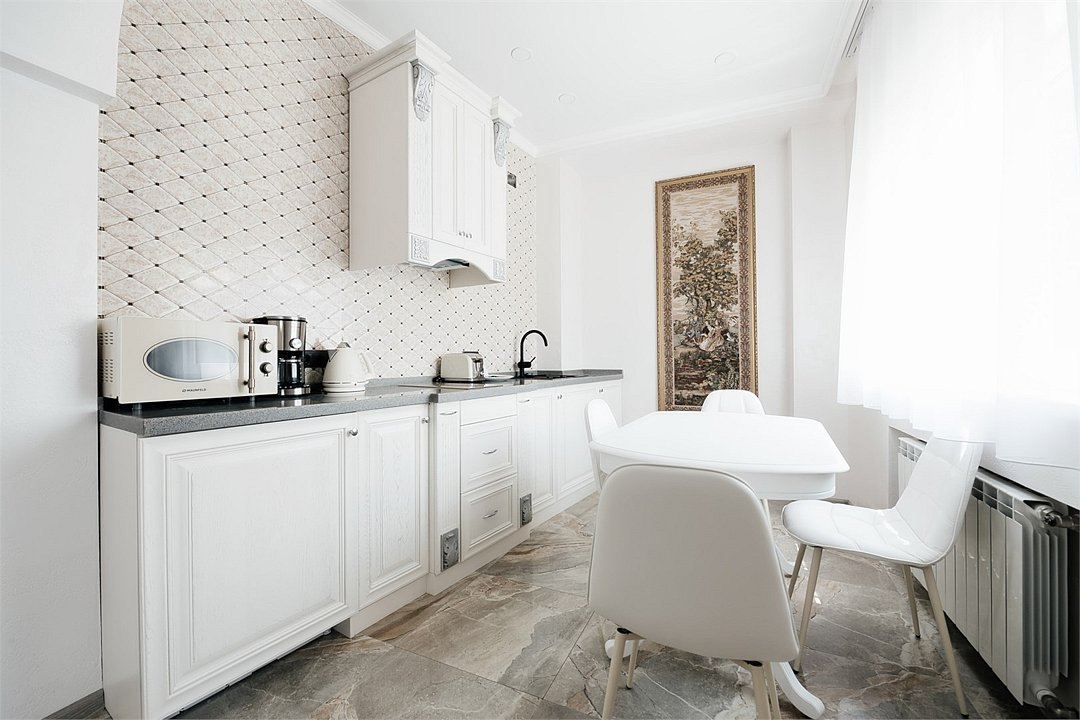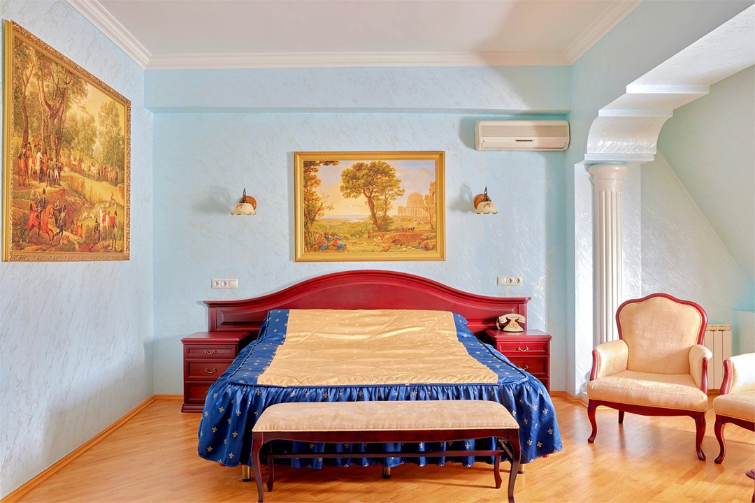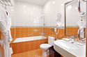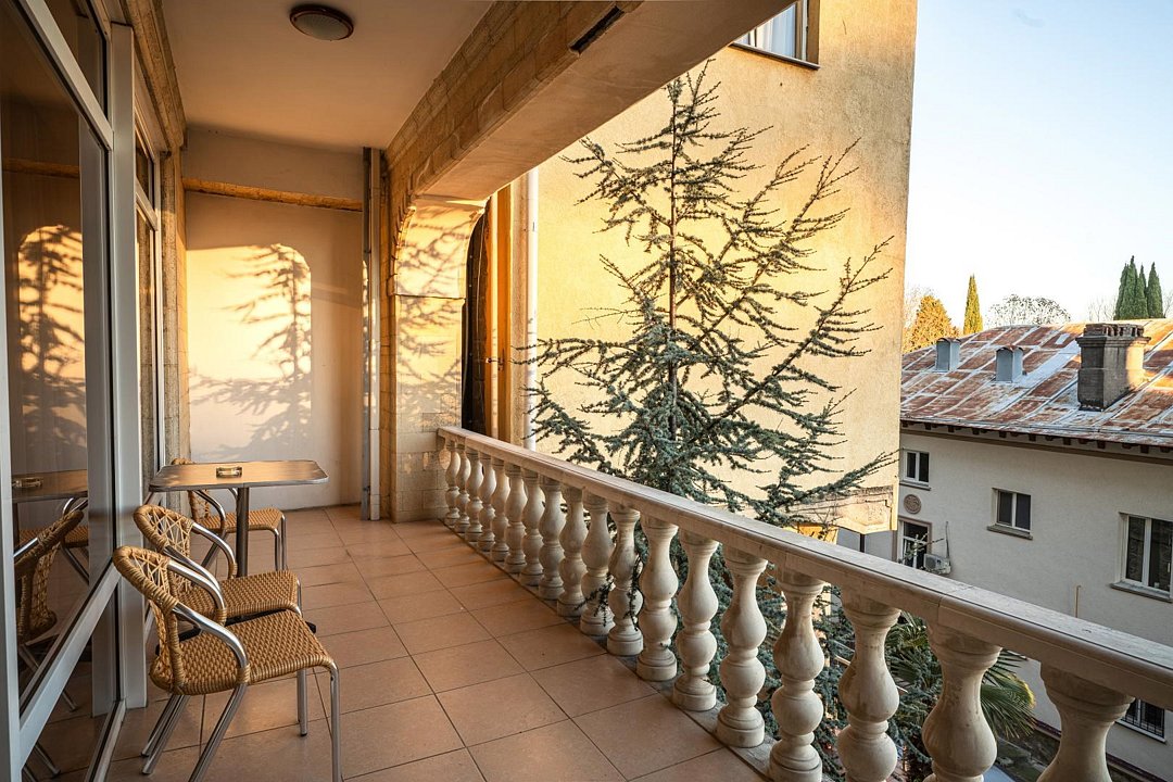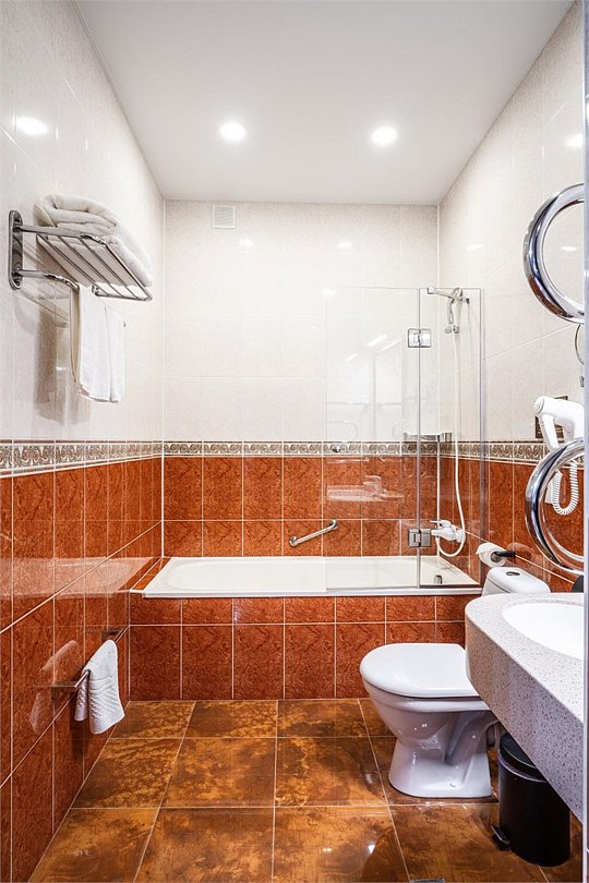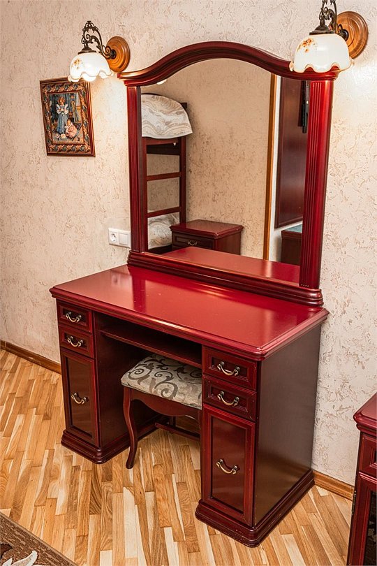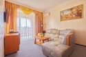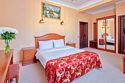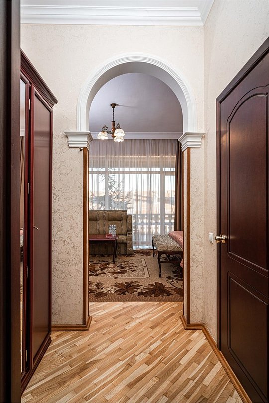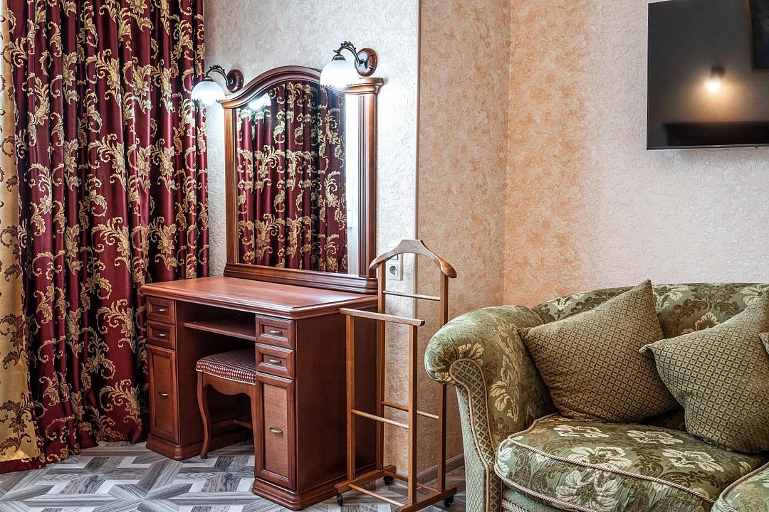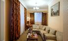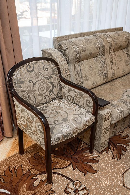 Маэстро - Очень уютный просторный номер площадью 45 м2 для комфортного размещения до 3-х человек. Номера оформлены в спокойных и гармоничных тонах, что создает приятную атмосферу для отдыха. В номере имеется двуспальная кровать, 2 кресла, пуфик, раскладной диван, журнальный столик, прикроватные тумбы, диван и многое другое. Уникальное сочетание комфорта, стиля и удобства ждет Вас здесь! Итальянская мебель придает номеру приятный шарм. Удобная ванна позволит с комфортом помыться и расслабиться.Услуги и удобства