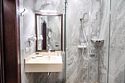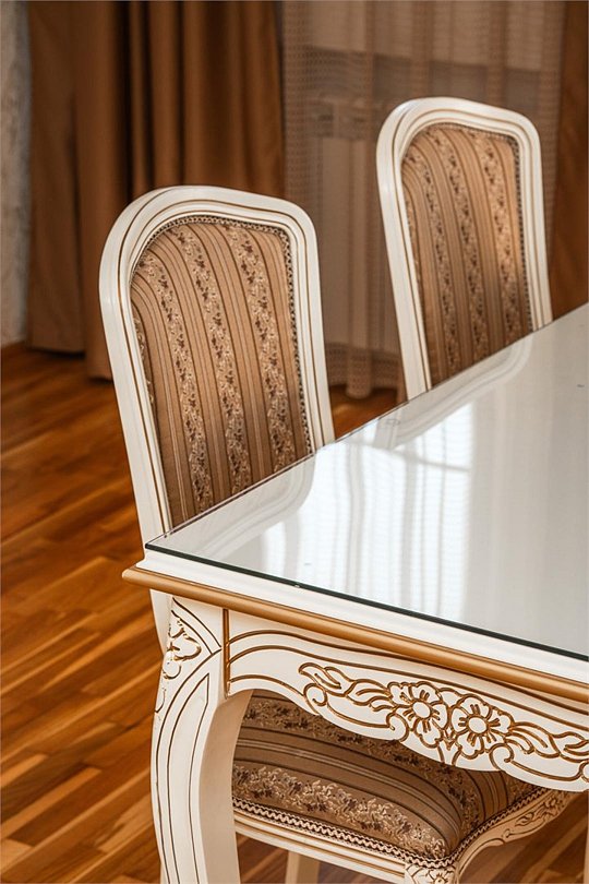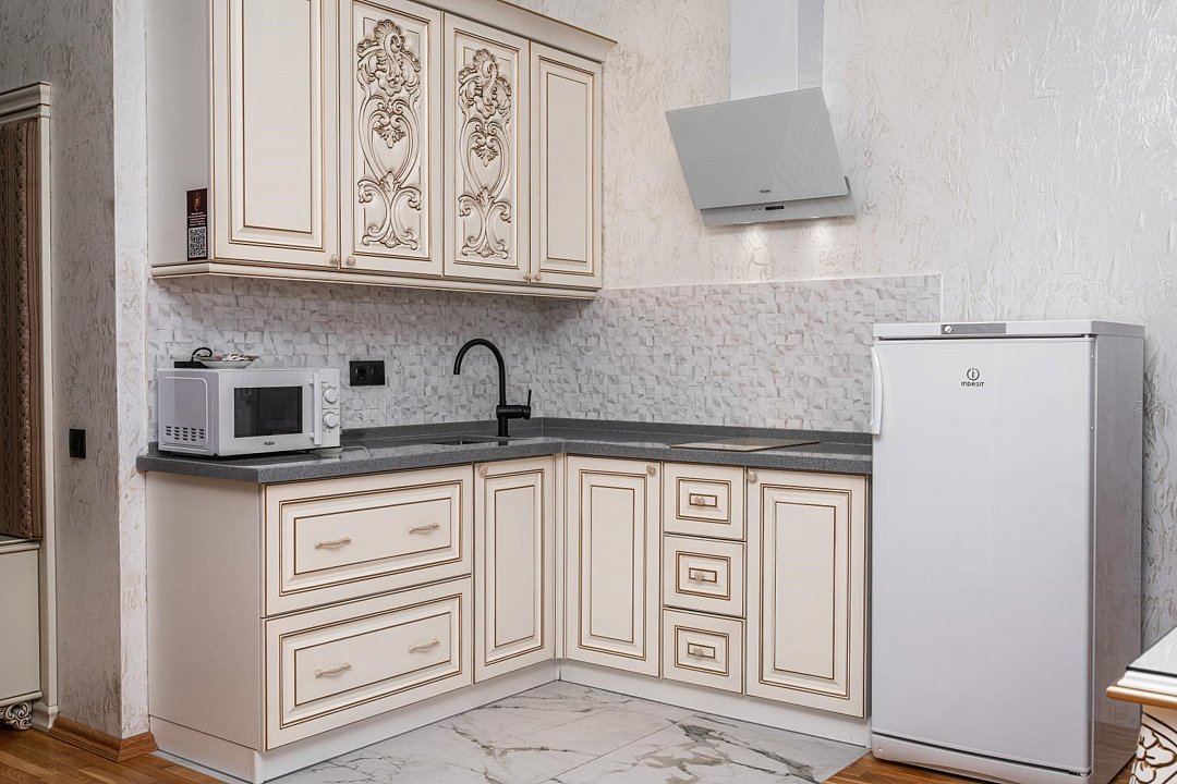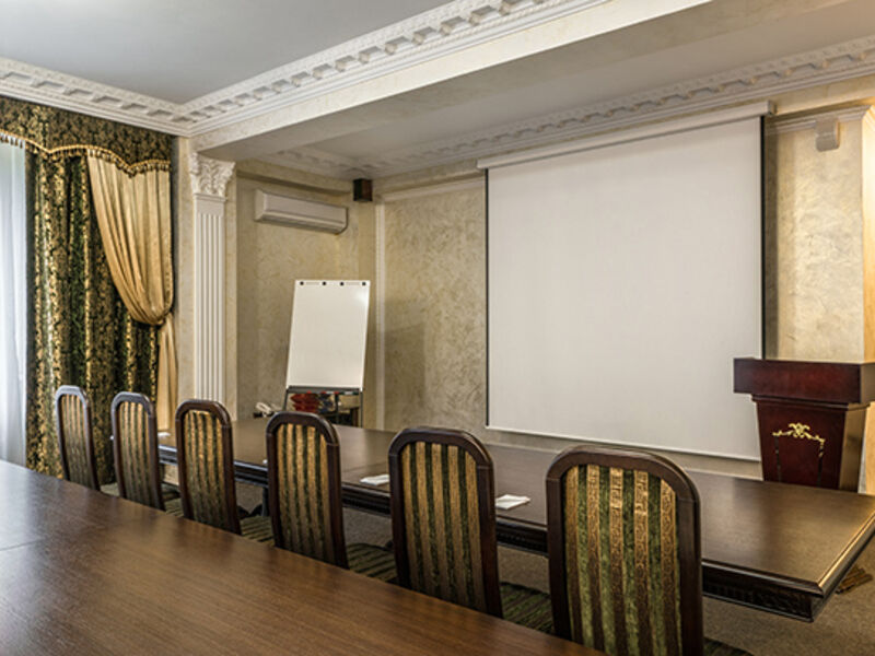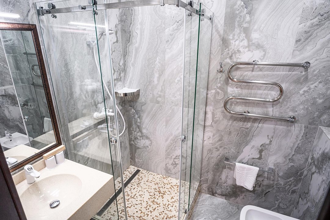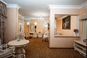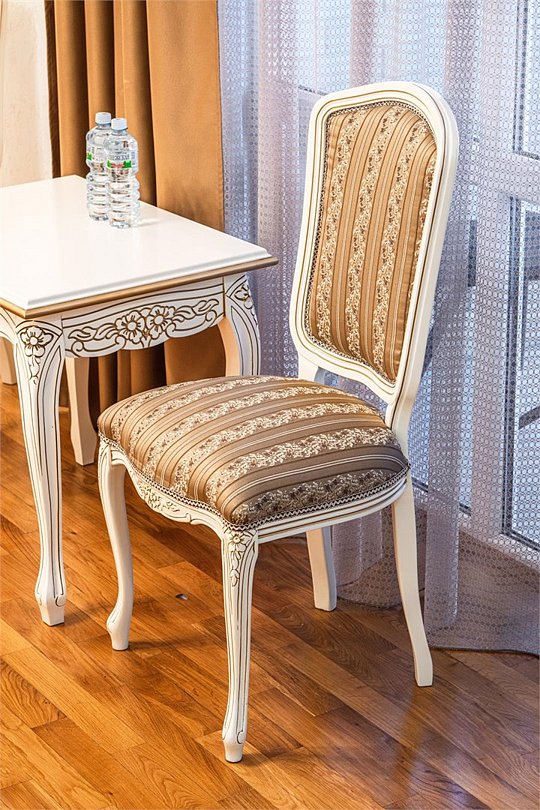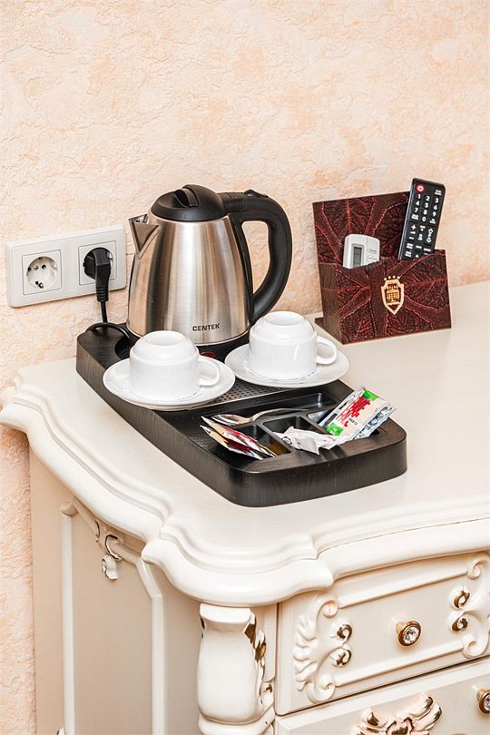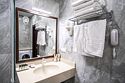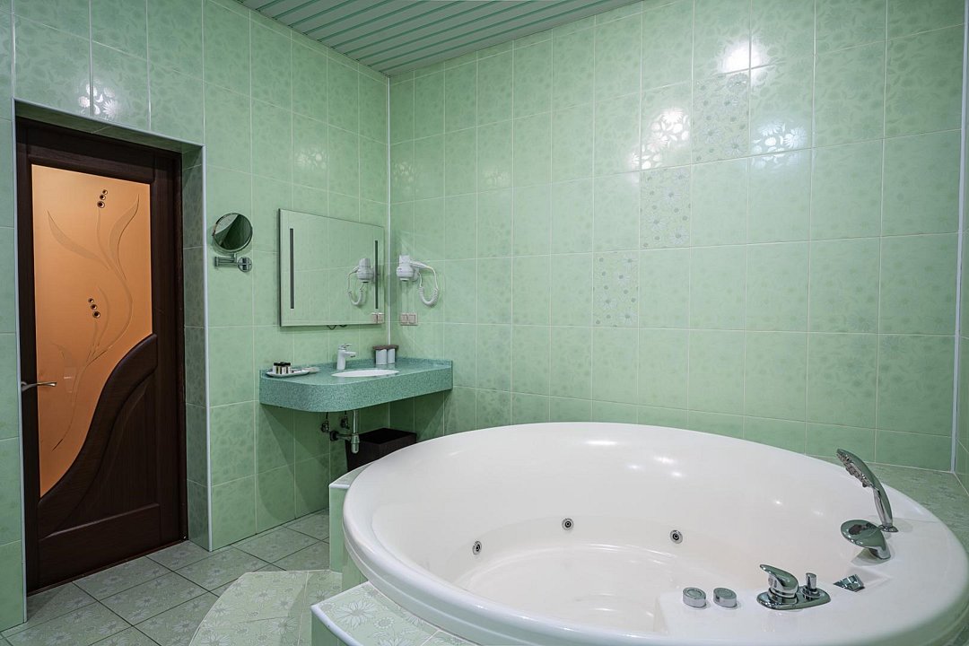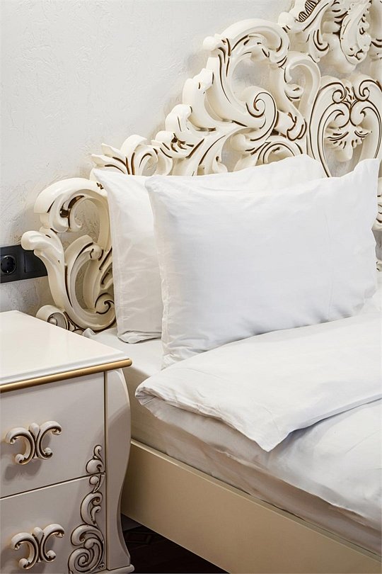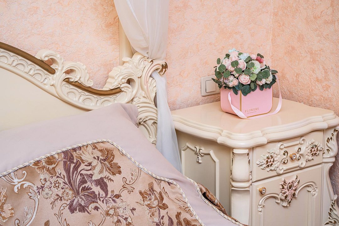 Королевский Люкс - чудесный просторный номер площадью 35 м2 с изысканным дизайном в светлой цветовой гамме. Тщательно подобранная авторская итальянская мебель идеально гармонирует между собой и подходит для особенных людей и исключительных событий. В номере Вас ждет чудесная двуспальная кровать, журнальный столик, прикроватные тумбы, трюмо с зеркалом и многое другое для Вашего максимального комфорта. В ванной комнате для Вас джакузи, душевая кабина, биде и вся необходимая косметика.Услуги и удобства