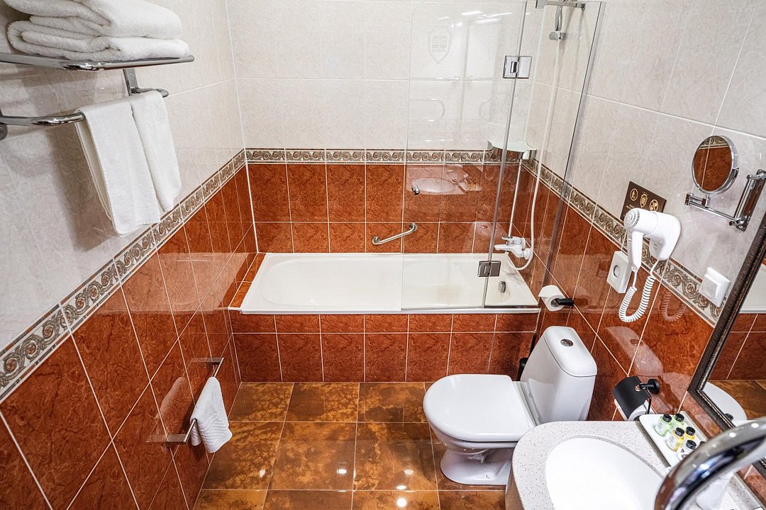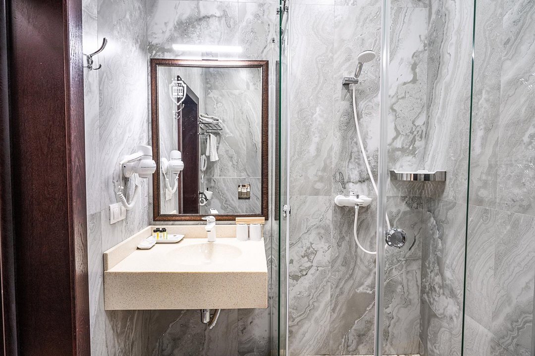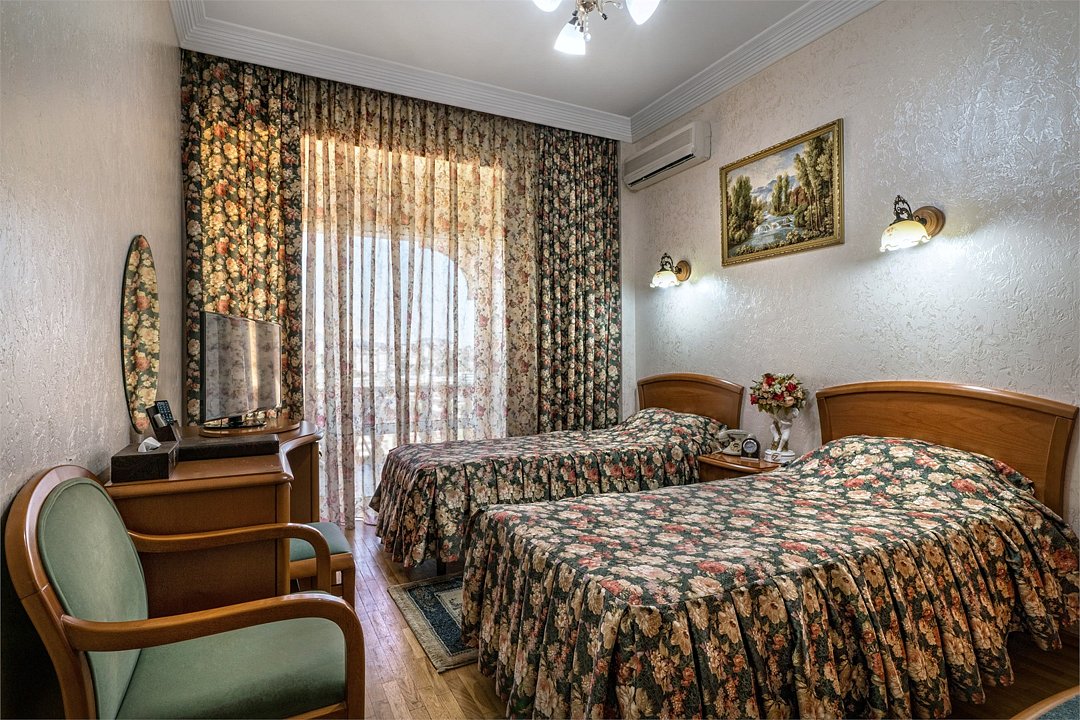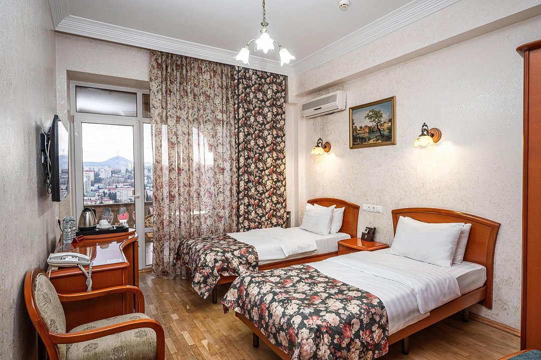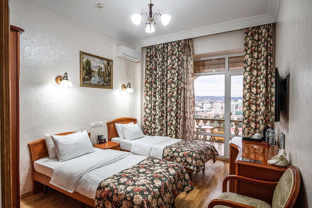 Бизнес-стандарт - это комфортный уютный номер на двоих площадью 20 м2 отлично подходит для бизнес-поездки или отдыха. Прекрасные виды с балкона открываются на центр Сочи, горы и/или море. Бизнес-стандарт оснащен двумя раздельными кроватями, прикроватной тумбой и шкаф-купе. В номере есть всё необходимое для создания благоприятной атмосферы отдыха после активного дня для восстановления сил. Ванная комната оснащена душем с полным набором качественной косметической продукции. Забронируйте Бизнес-стандарт и проведите время комфортно в центре Сочи!Услуги и удобства