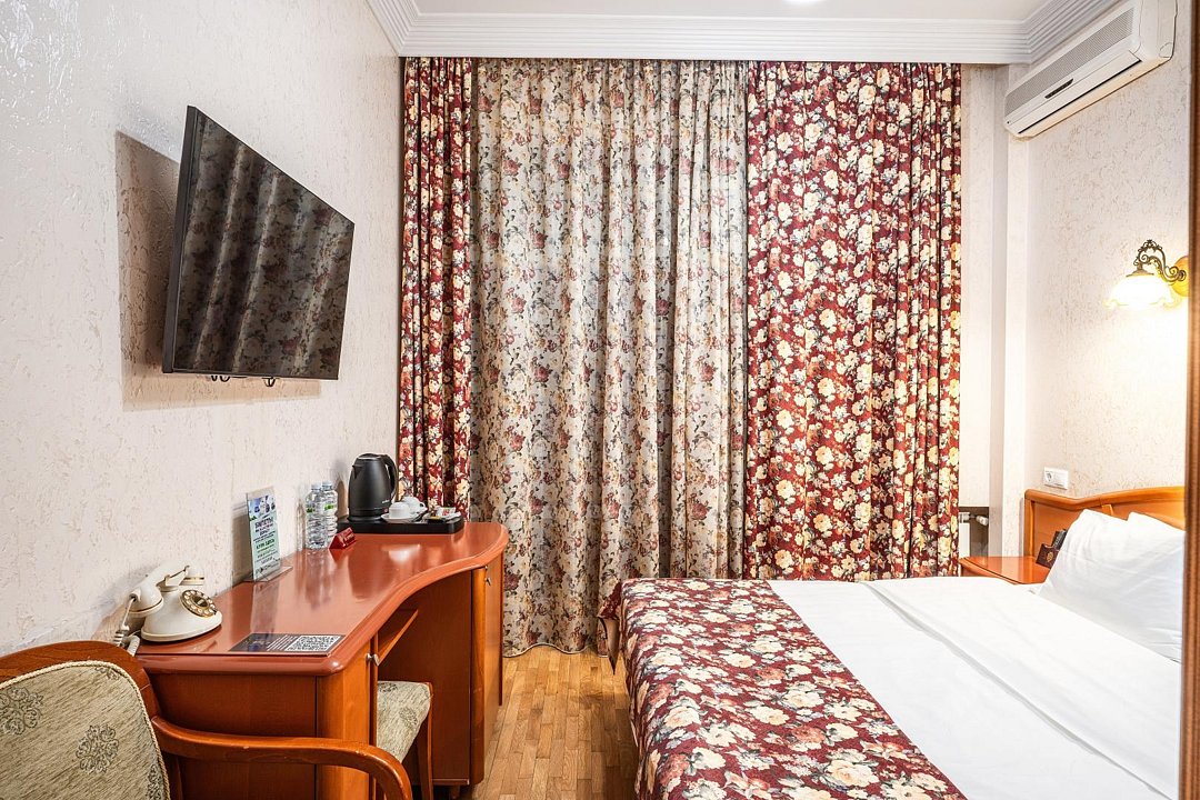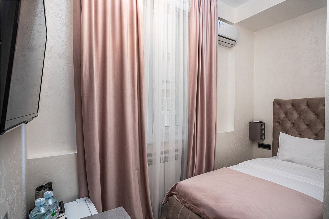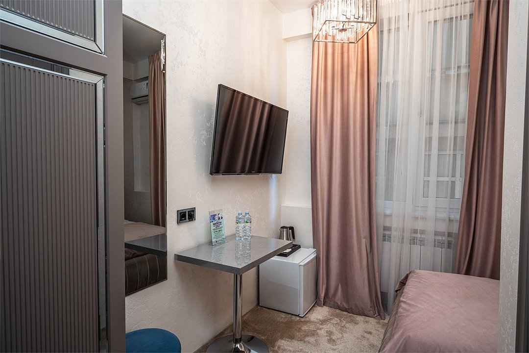 Уютный номер площадью 11 м2 отлично подходит для командировки или отдыха. Номер Сингл оснащен одной односпальной кроватью, холодильником, телефоном и шкаф-купе. В номере есть всё необходимое для создания удобств на одного гостя для восстановления сил и отдыха после активного дня. Ванная комната оснащена душем с полным набором качественной брендированной косметической продукции. Забронируйте Сингл и насладитесь хорошим выгодным отдыхом в центре Сочи!Услуги и удобства