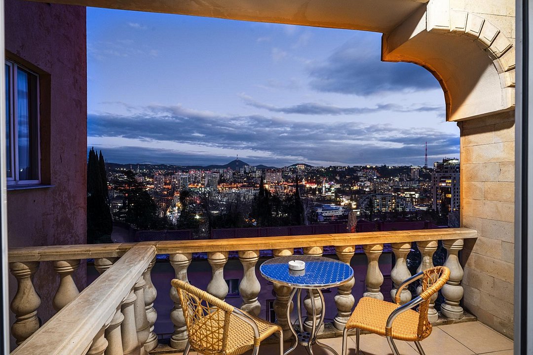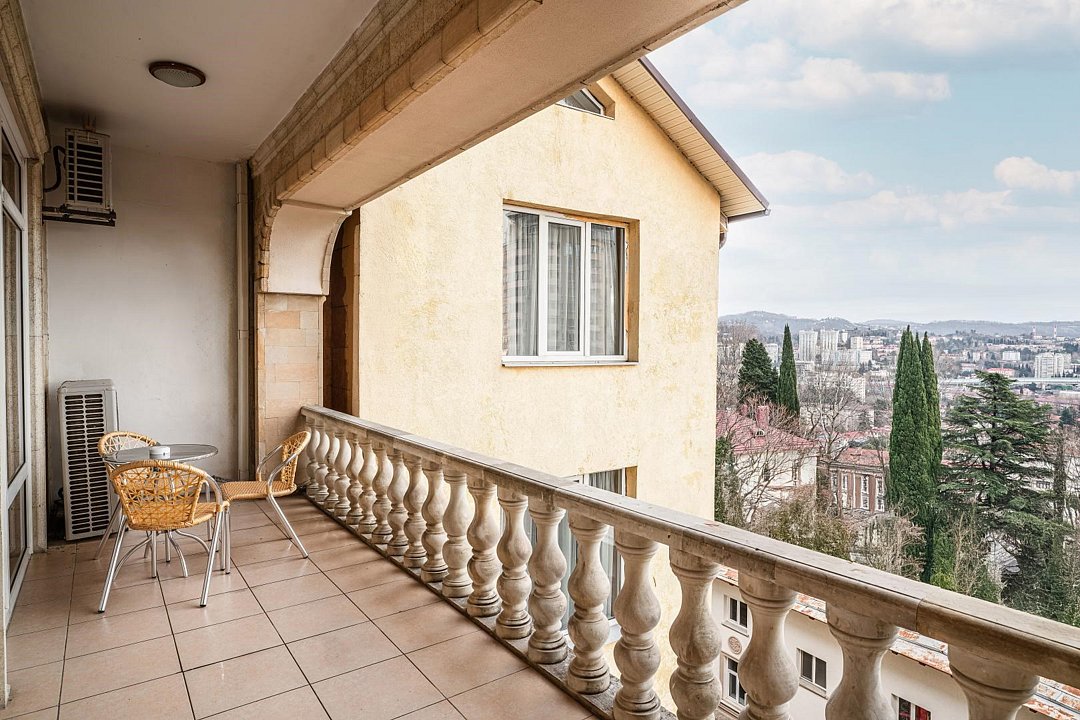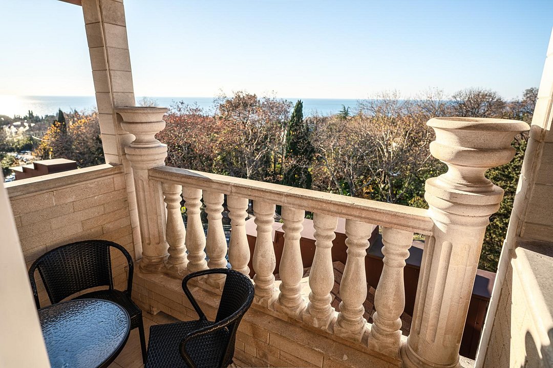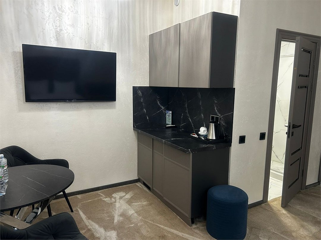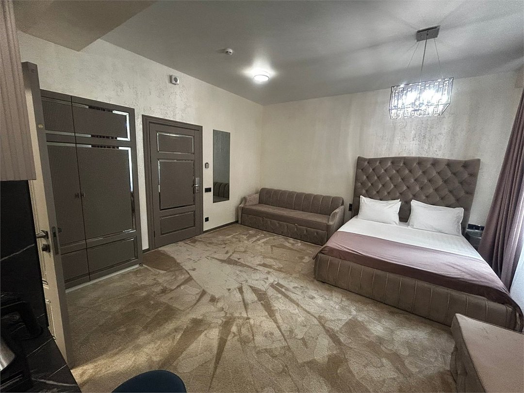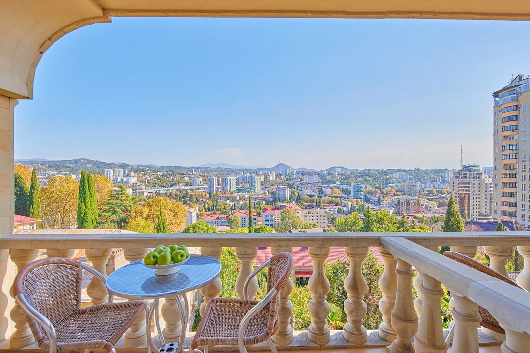 Студио с балконом - Идеальный просторный номер повышенной комфортности площадью 33 м2, имеющий много свободного места и позволяет с удобством разместить до 4-х гостей. В номере имеется двуспальная французская кровать, мягкий раскладной диван, журнальный столик, прикроватные тумбы и многое другое. А стол и 3 ротанговых кресла на просторном балконе позволят с удобством насладиться потрясающими видами на море, горы или Сочи! Спокойная атмосфера способствует беззаботному отдыху для восстановления сил и энергии. Также приятно любоваться огнями вечернего Сочи. Удобная ванна позволит с комфортом помыться и расслабиться, для чего имеются все необходимые косметические и туалетные принадлежности.Услуги и удобства
