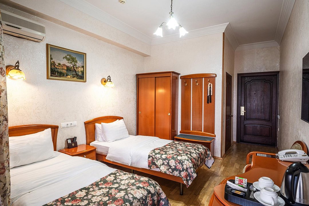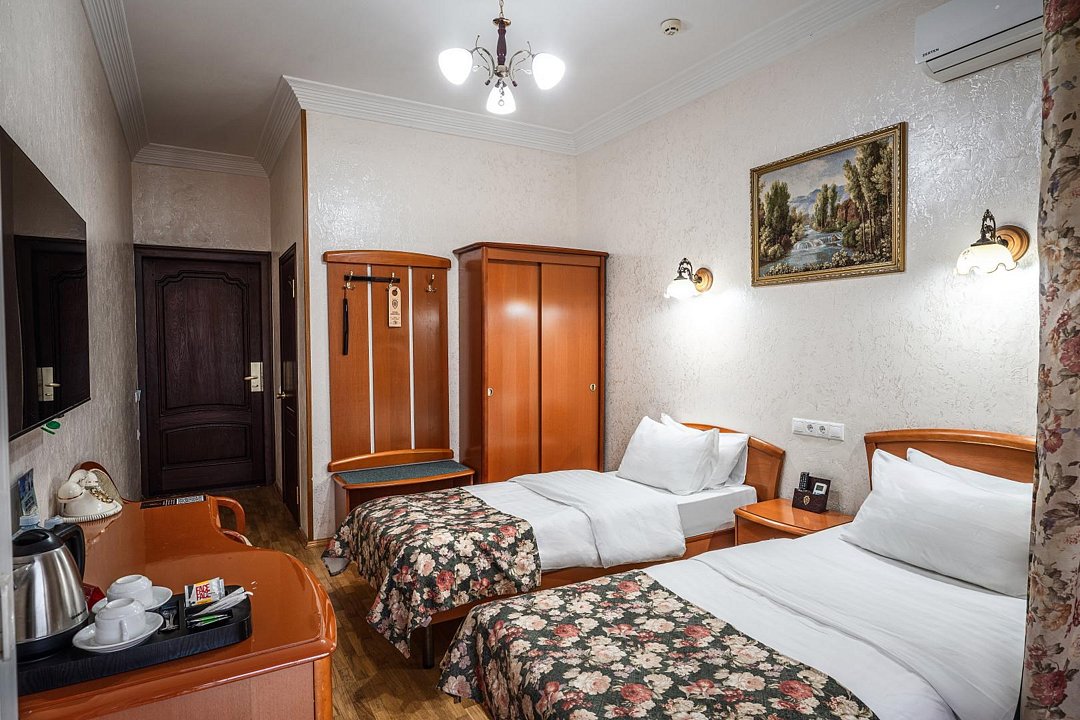 две раздельные кровати, кондиционер, сейф, ТВ, душ