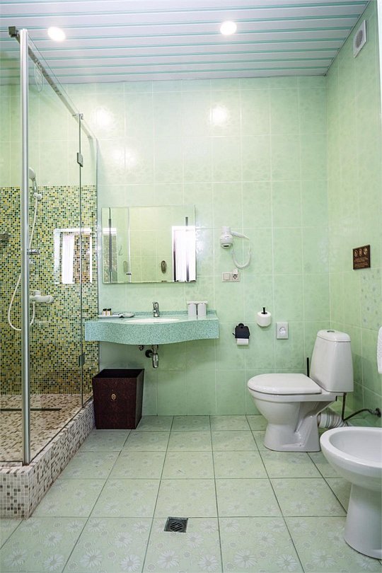 Wi-Fi, кондиционер, фен, электронные замки, ванная комната, душевая кабина, халаты, банные полотенца, тапочки, косметические средства, двуспальная кровать, диван, стулья, шкаф для одежды, вешалки, обеденный стол, барная стойка, зеркало, ковер, сейф, чайник, унитаз, раковина, обеденная зона, отопление, кресло, вид во двор, туалетные средства, раскладной диван, внутренний телефон, телевизор с плоским экраном, мини-холодильник, номер для некурящих, общественный бассейн, кресло-кровать, чайная станция, двуспальный раскладной диван-кровать, услуги прачечной (платно), бутилированная вода, мыло, затемняющая штора, зеркало в полный рост, без питомцевВ номере