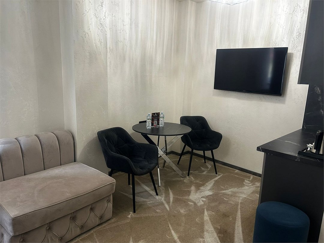 Студио без балкона - прекрасный номер площадью 25 м2 позволит Вам погрузиться в атмосферу уюта и чувствовать себя, как дома. Номер идеально подходит для двоих! Для Вашего удобства в номере расположена одна двуспальная французская кровать, 2 кресла, журнальный столик, прикроватные тумбы и многое другое. Все это создает очень приятную и спокойную атмосферу для восстановления сил и полноценного отдыха. Вид из окон направлен на центр Сочи и горы, что позволяет любоваться вечерними пейзажами Сочи. В ванной комнате Вы сможете принять душ и расслабиться для чего имеются все необходимые косметические и туалетные принадлежности.Услуги и удобства