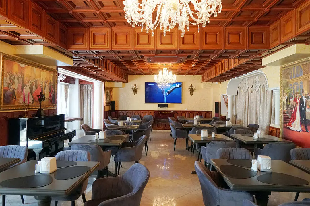 - просторный зал в ресторане «Александр» для банкета на 50 персон;
