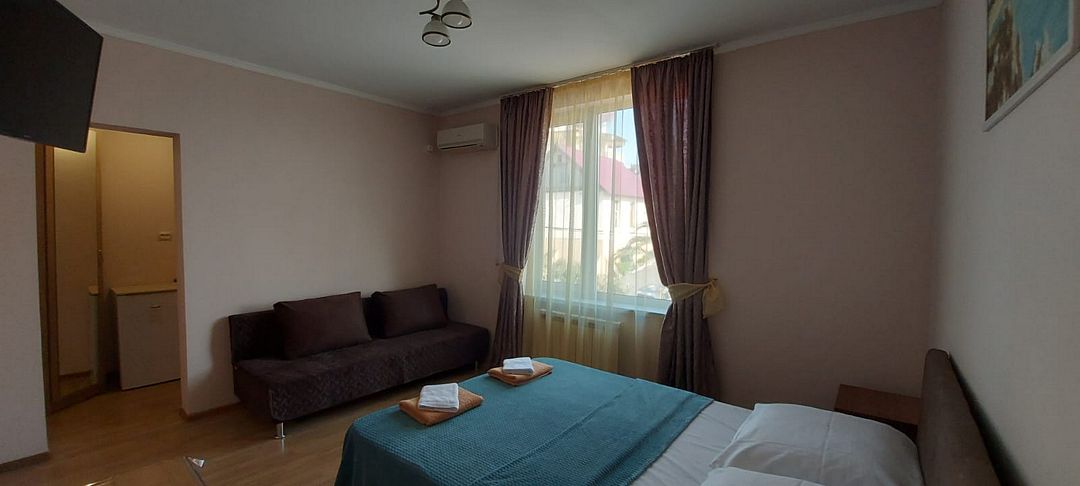 В номере: 1 двуспальная кровать, 1 двуспальный диван.