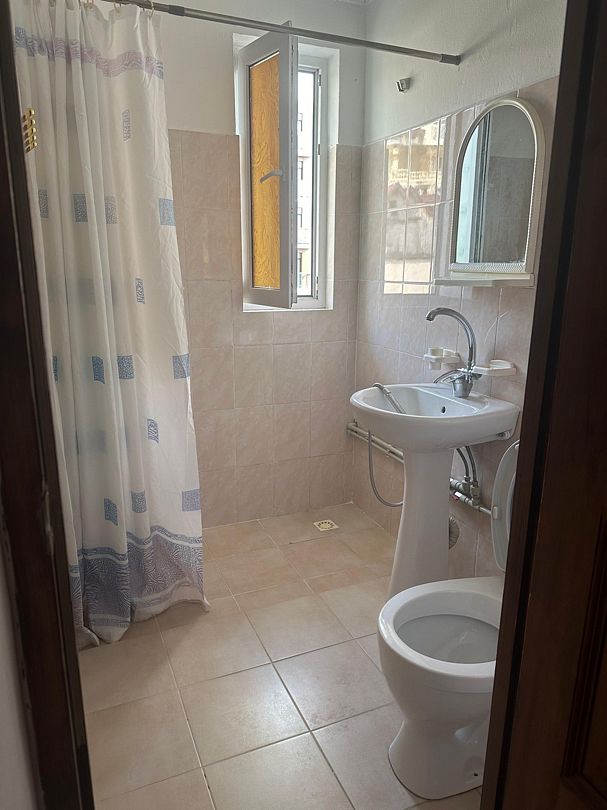 Индивидуальная ванная комната: душ, раковина, туалет.