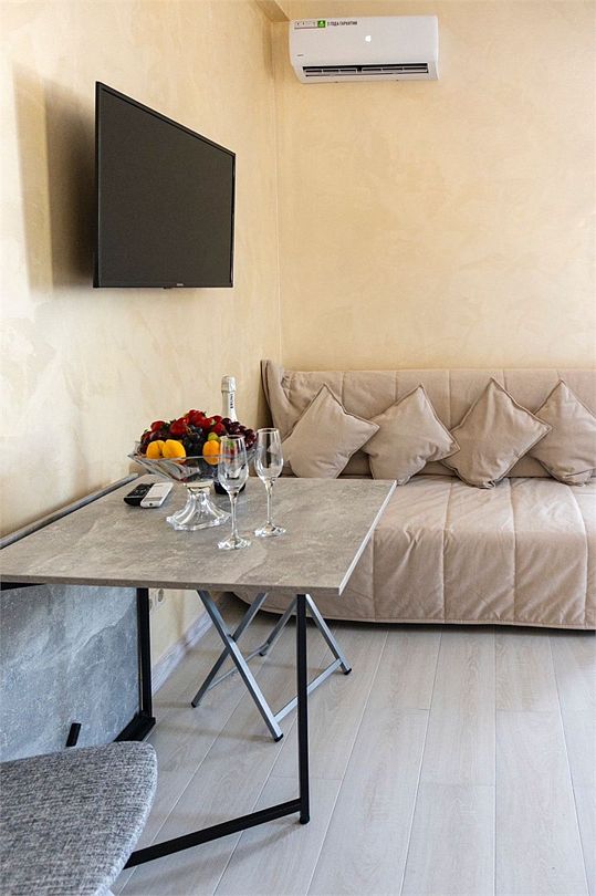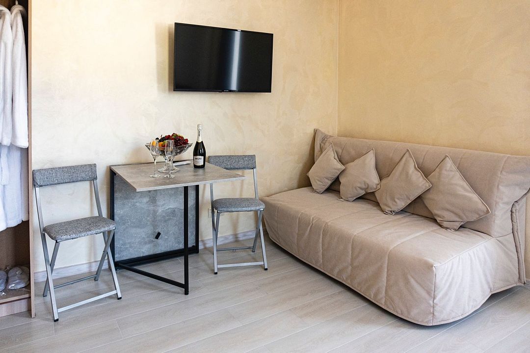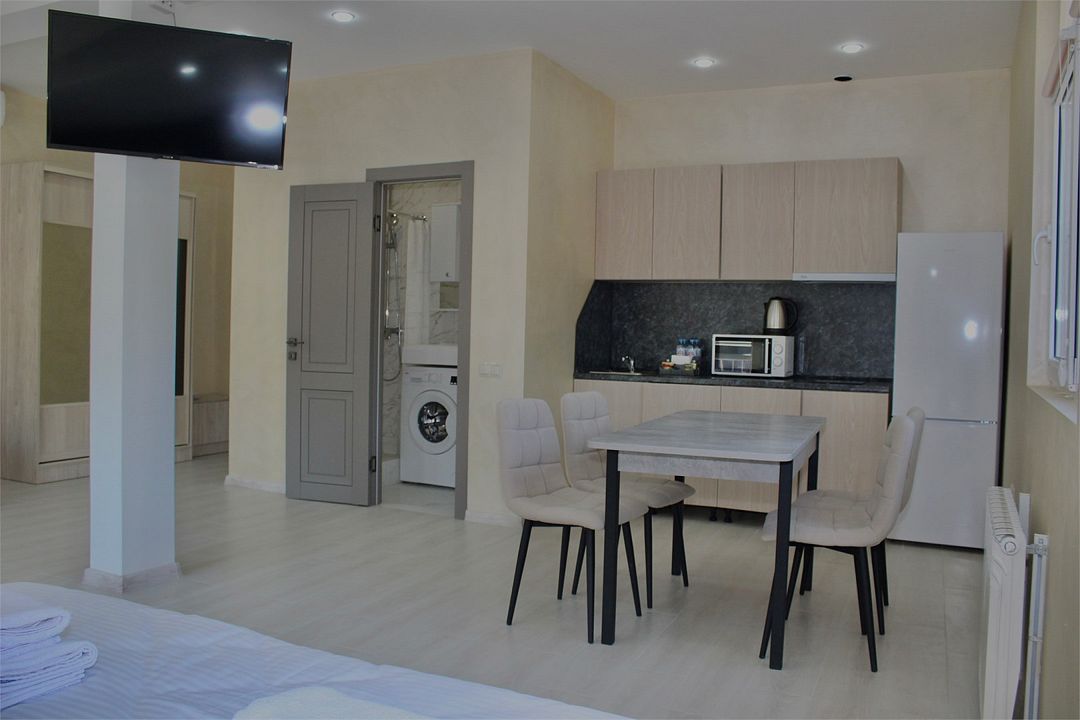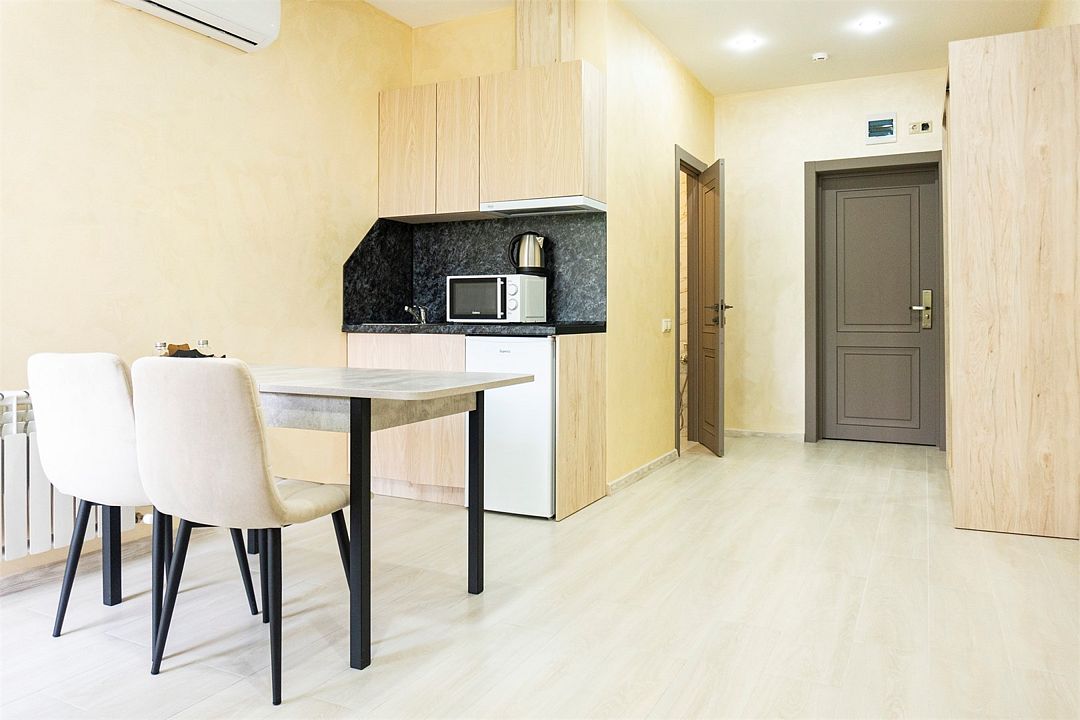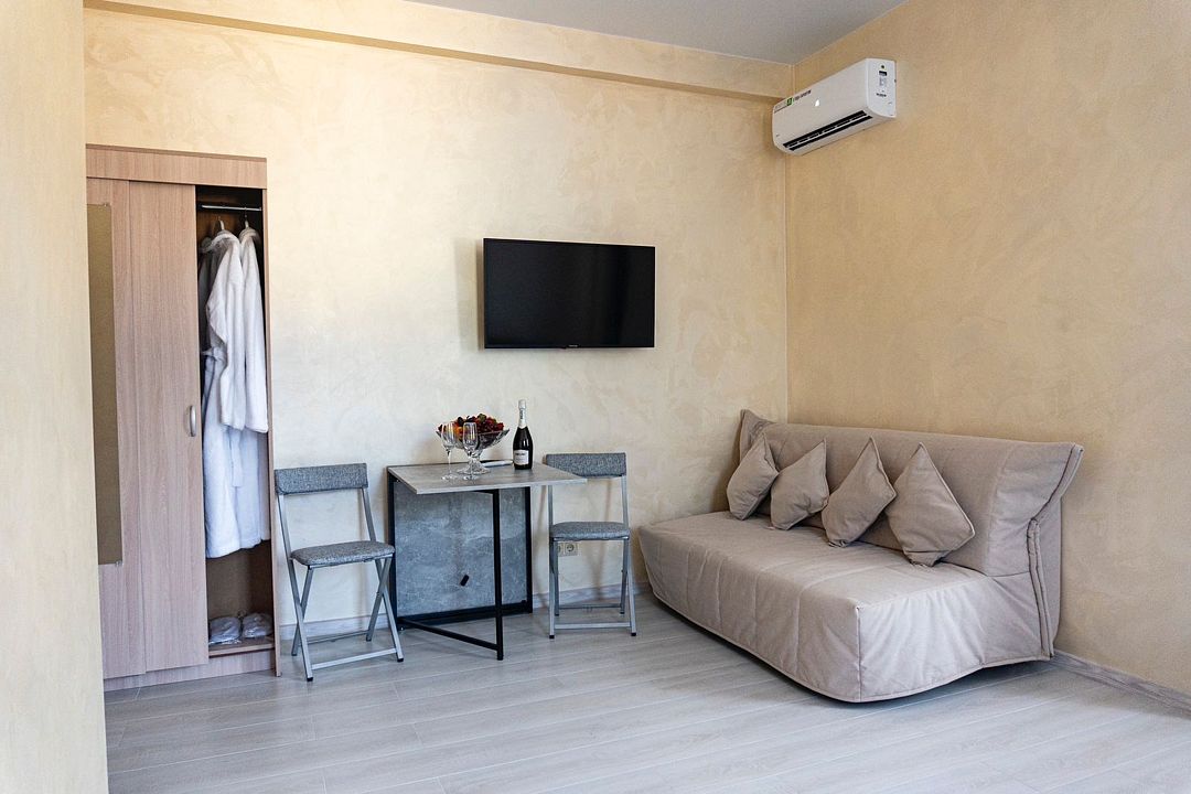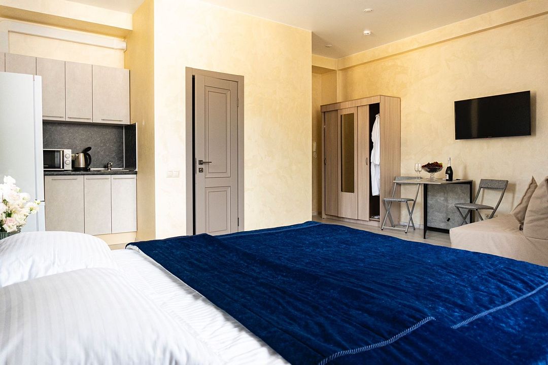 Выберите апартаменты, идеально подходящие вашим потребностям: от просторных «Luxe Family» с балконом до уютных «Studio». Все апартаменты оборудованы современной мебелью, высокоскоростным Wi-Fi, плазменным телевизором и кондиционером. В каждой из них — полностью оборудованная кухня, ванная комната с душевой, стиральной машиной, полотенцесушителем и набором косметических средств.