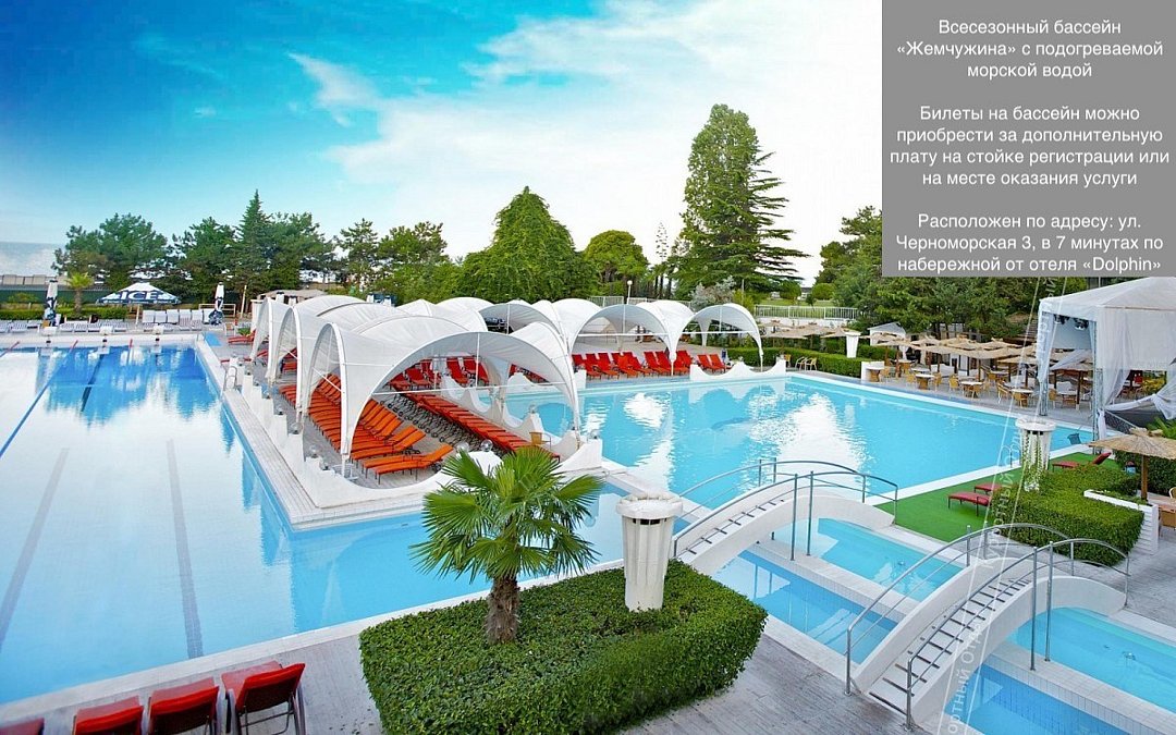 Элегантный курортный отель «Dolphin Resort by Stellar Hotels, Sochi» расположен в окружении прекрасной природы на берегу моря в Сочи. Гостиницу окружает благоустроенная ухоженная территория, видом которой приятно наслаждаться в любое время года. По соседству с гостиницей также находится прекрасный парк, гулять в котором одно удовольствие. С окон ресторанно-гостиничного комплекса открываются великолепные панорамы на море и город. Заведение находится в центре курорта, поэтому гости в любое удобное для себя время смогут посетить достопримечательности Сочи.
