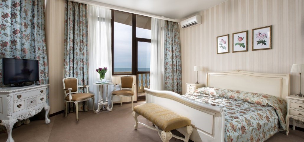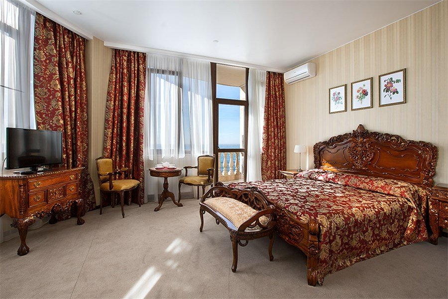 телевизор, кабельное телевидение, Wi-Fi, IP-телефон, холодильник, кондиционер, система климат-контроля, светильник, настольные лампы, фен, система безопасности, электронные замки, обогреватель, ванная комната, ванна, санузел, биде, банные принадлежности, банные полотенца, пляжные полотенца, тапочки, гигиенические средства, косметические средства, балкон, балкон с красивым видом, двуспальная кровать, ортопедический матрас, кресла, тумбы, стулья, шкаф для одежды, гардеробная, вешалки, журнальный столик, письменный стол, багажная тумба, зеркало, комод, пуфики, ковер, эксклюзивная мебель, мебельный гарнитур, набор посуды, обслуживание номеров, информационная карта, меню, сейф, чайник, унитаз, раковина, мягкая мебель, косметическое зеркало, обеденная зона, гостиная зона, ковровое покрытие, отопление, вид на мореВ номере