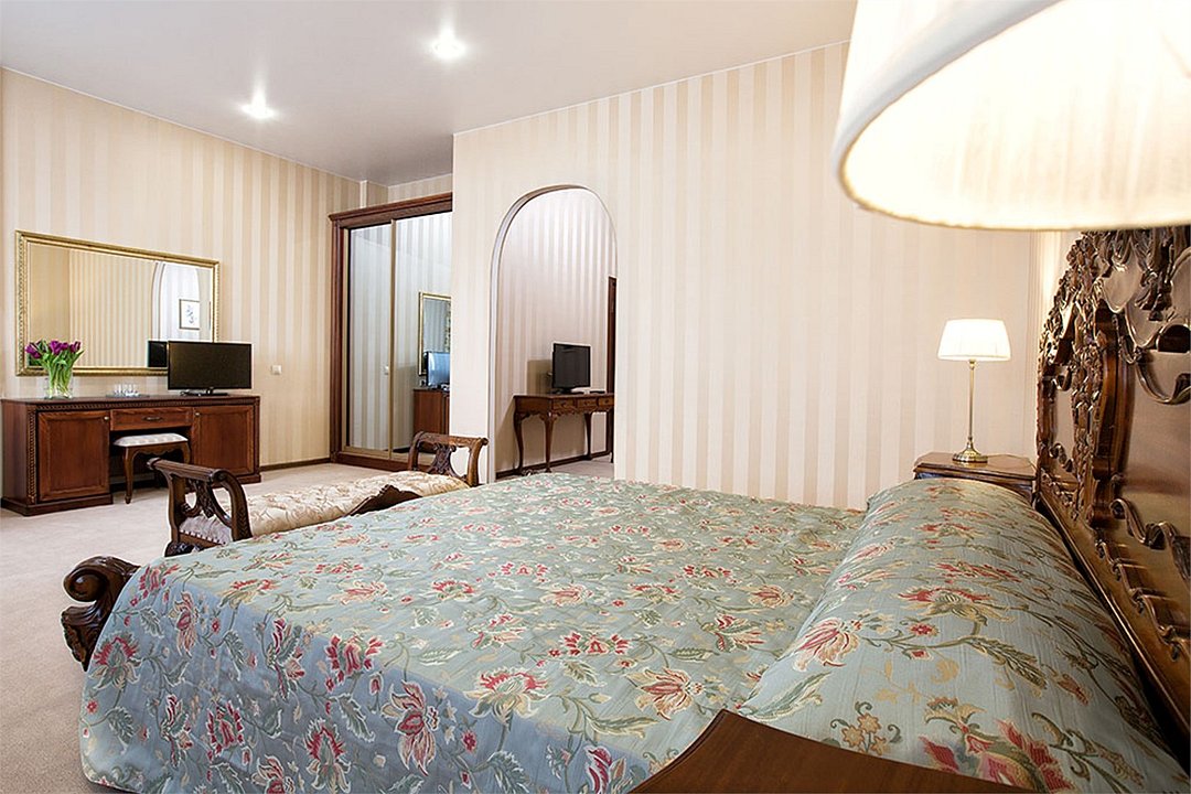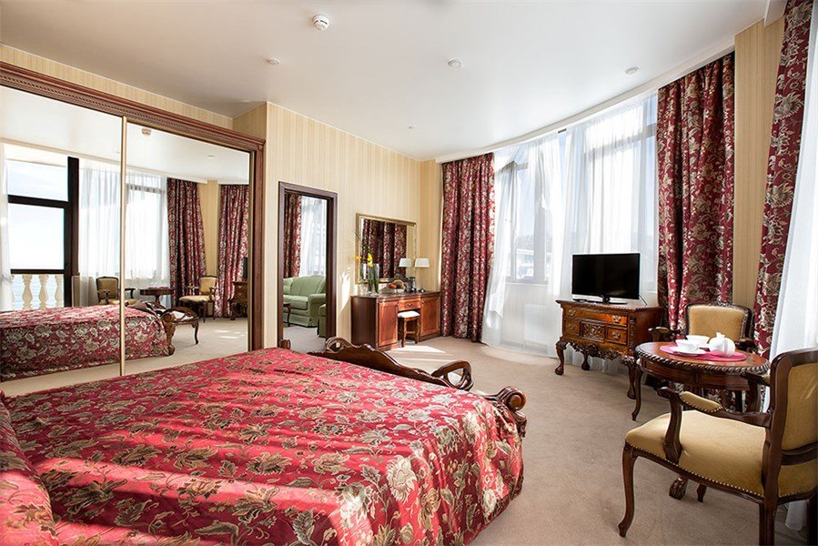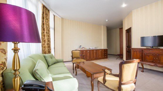 два телевизора, кабельное телевидение, Wi-Fi, IP-телефон, холодильник, кондиционер, система климат-контроля, светильник, настольные лампы, фен, система безопасности, электронные замки, обогреватель, ванная комната, ванна, санузел, биде, банные принадлежности, халаты, банные полотенца, пляжные полотенца, тапочки, гигиенические средства, косметические средства, двуспальная кровать, ортопедический матрас, диван, кресла, тумбы, стулья, шкаф для одежды, гардеробная, вешалки, журнальный столик, письменный стол, стол для переговоров, багажная тумба, зеркало, комод, пуфики, ковер, эксклюзивная мебель, мебельный гарнитур, две комнаты, набор посуды, обслуживание номеров, информационная карта, меню, сейф, чайник, унитаз, раковина, мягкая мебель, косметическое зеркало, обеденная зона, гостиная зона, ковровое покрытие, отоплениеВ номере