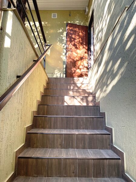 Домик находится на возвышенности, к нему ведут лестницы и ступеньки. Семьям с маленькими детьми и пожилым людям следует иметь это в виду.