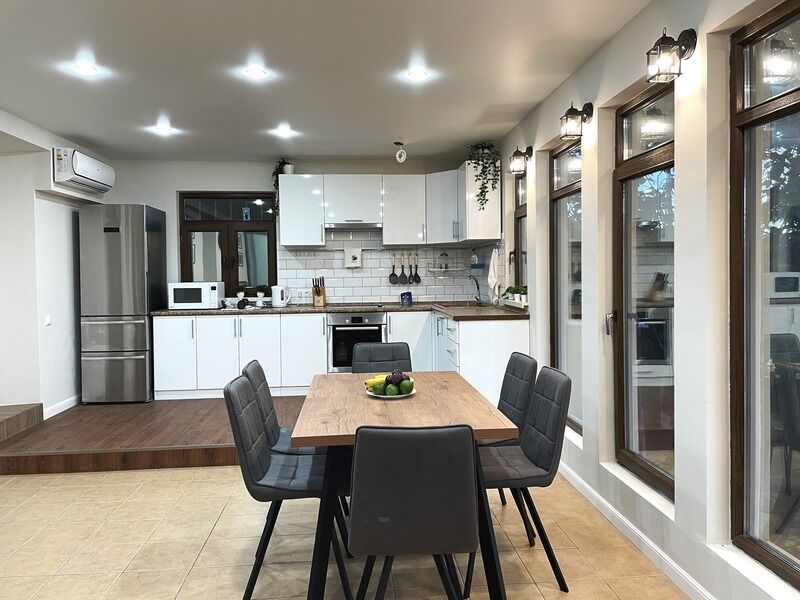 В распоряжении гостей 3 спальни и кухня-гостиная, 2 санузла. Постельное белье и полотенца. На улице терраса с уличной мебелью для отдыха. Во внутреннем дворике находятся все необходимое для отдыха на свежем воздухе.