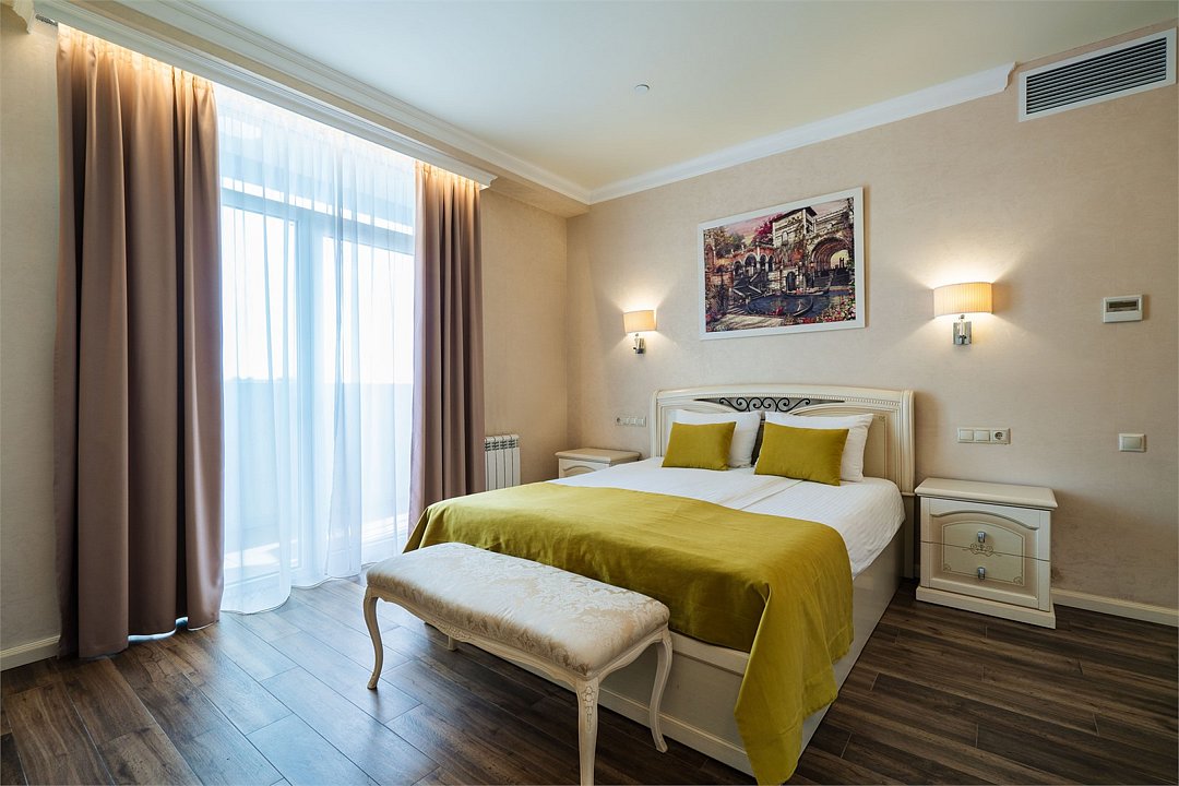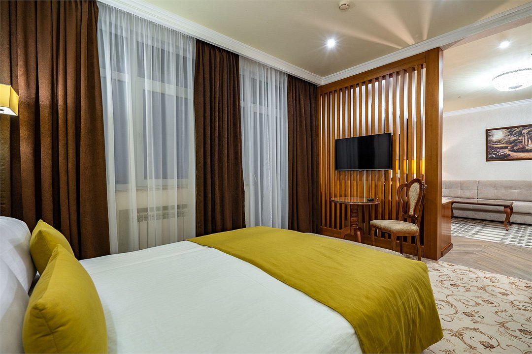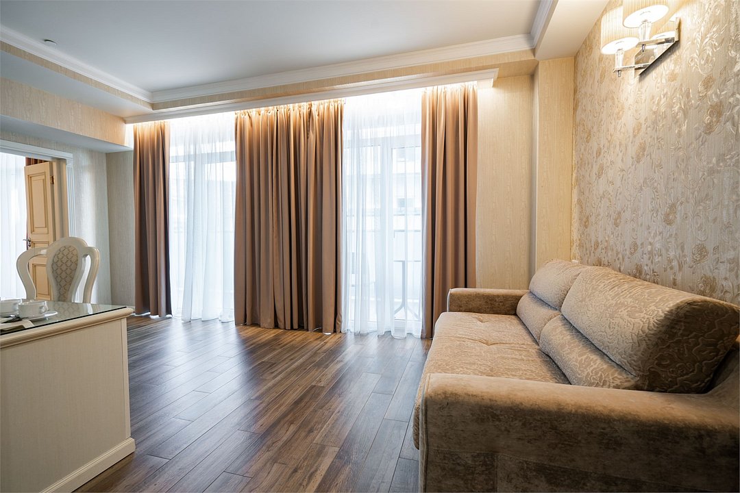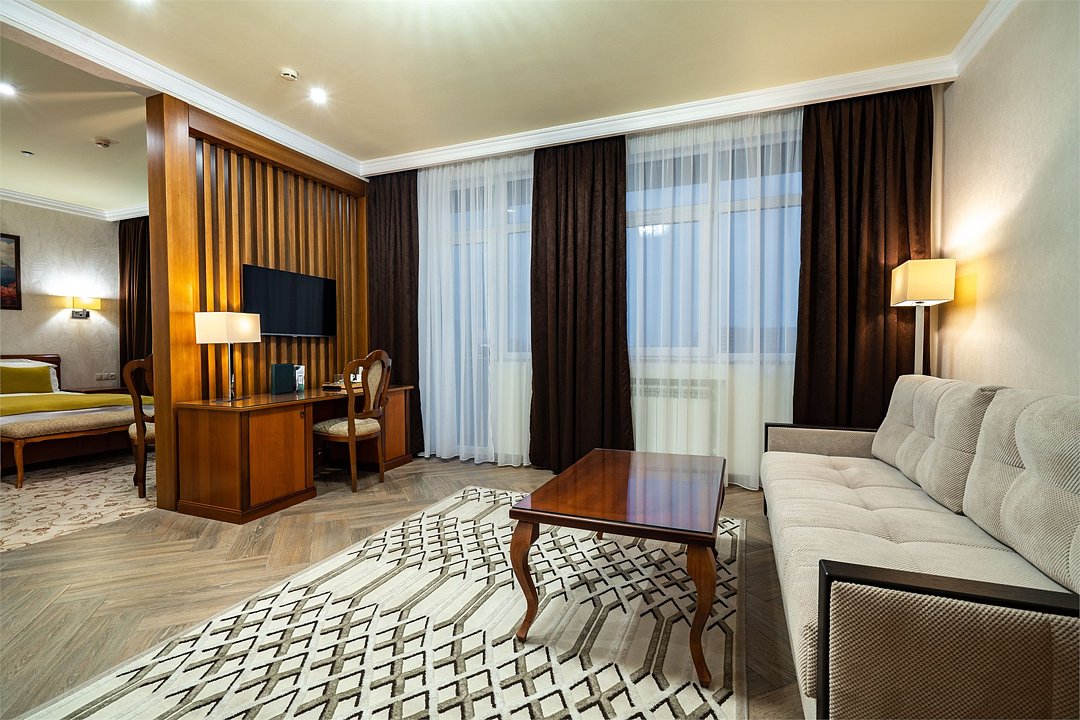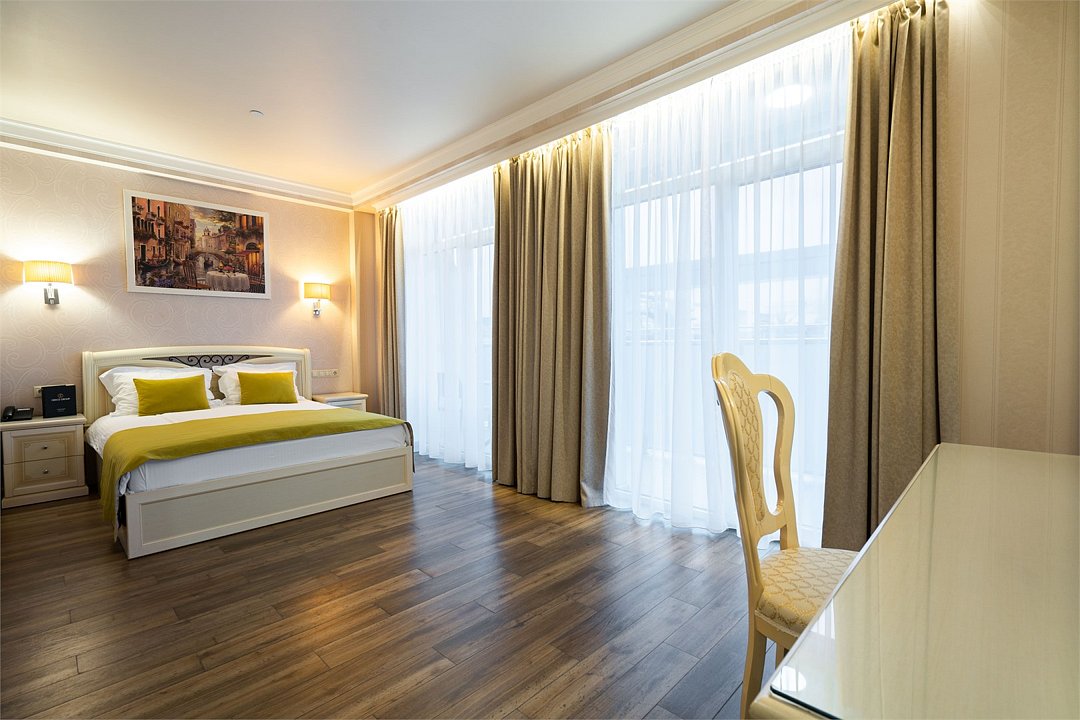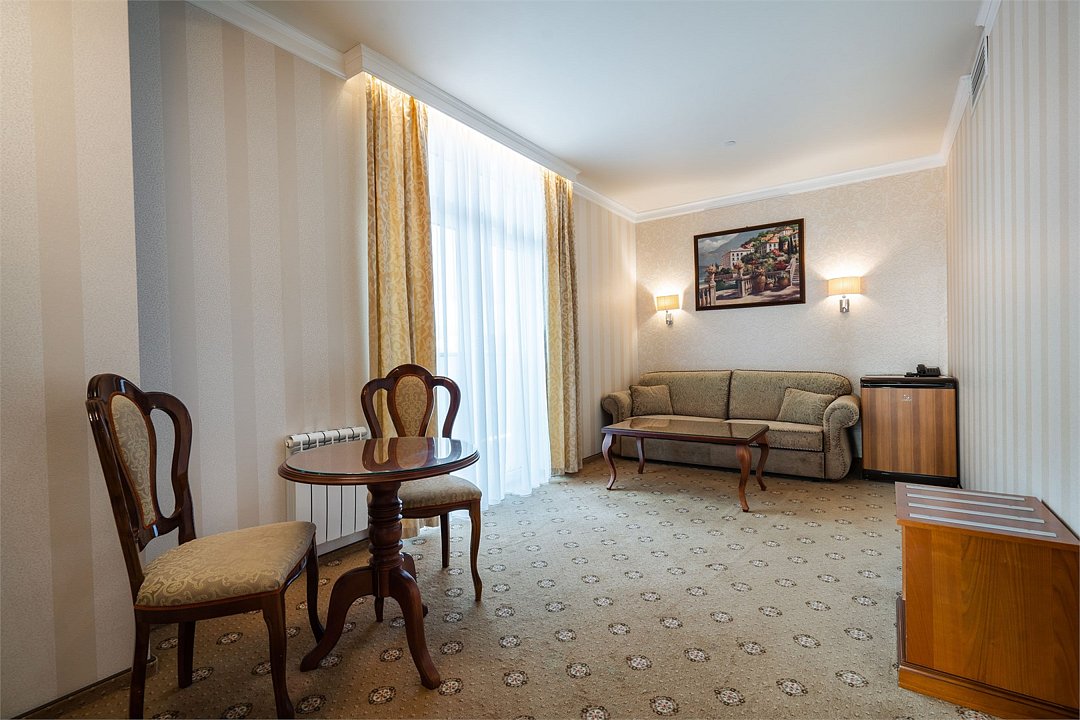 Просторный Люкс, уютный двухкомнатный номер с балконом. Идеально подходит для семьи. Номер оснащен всем необходимым для комфортного проживания.Услуги и удобства