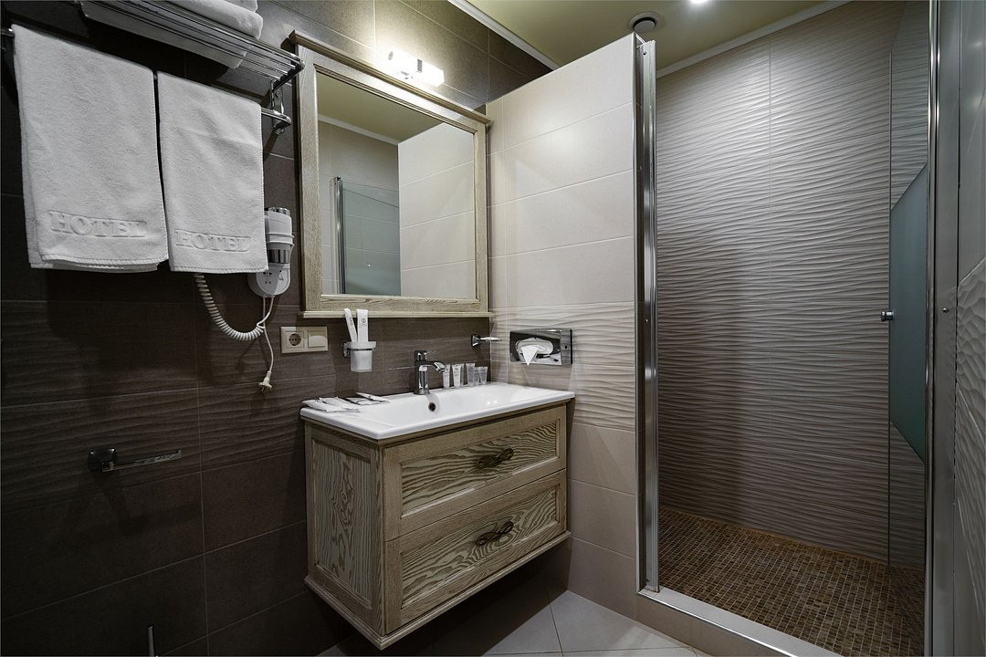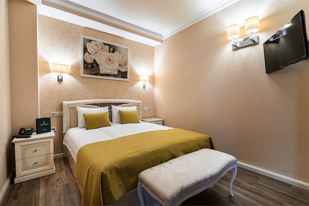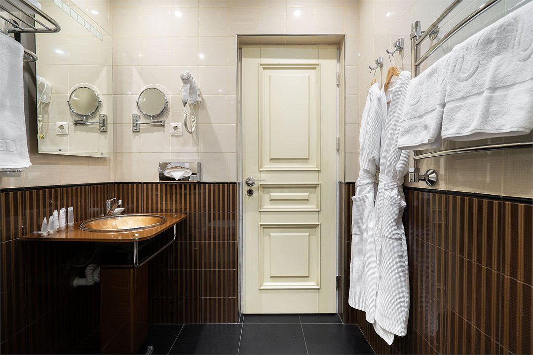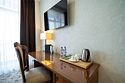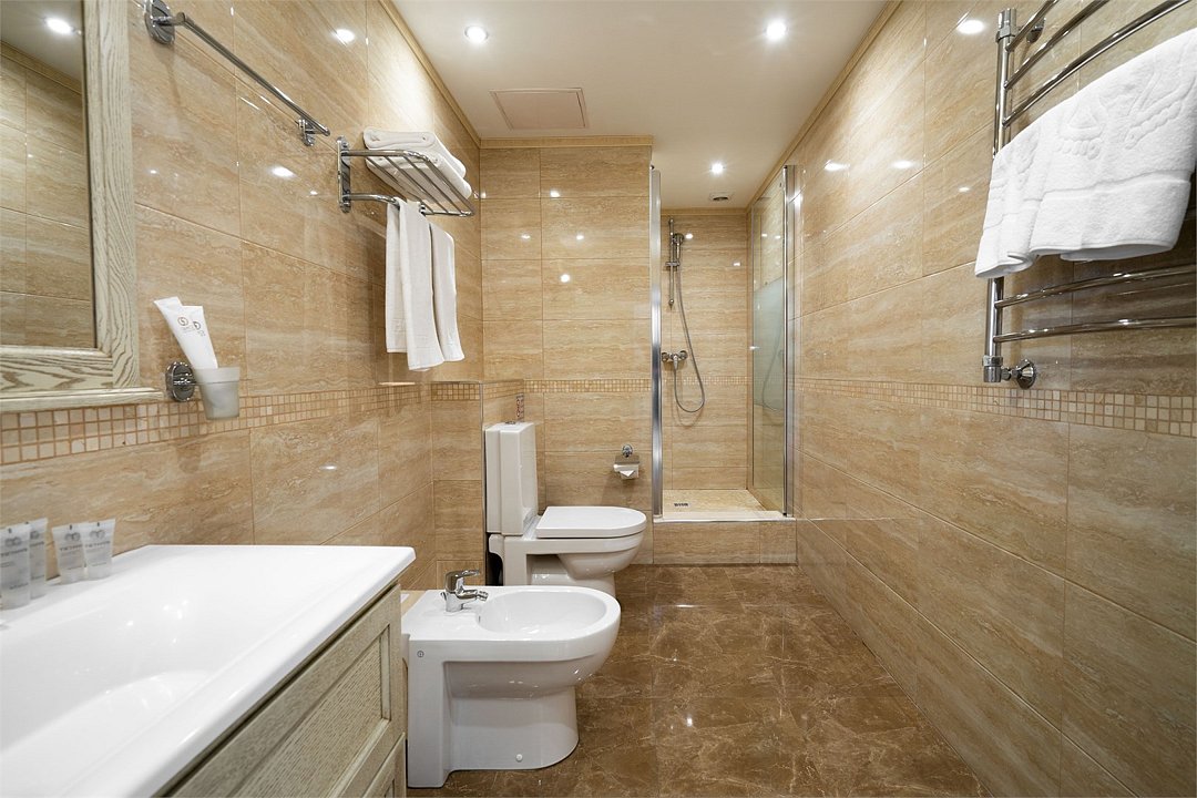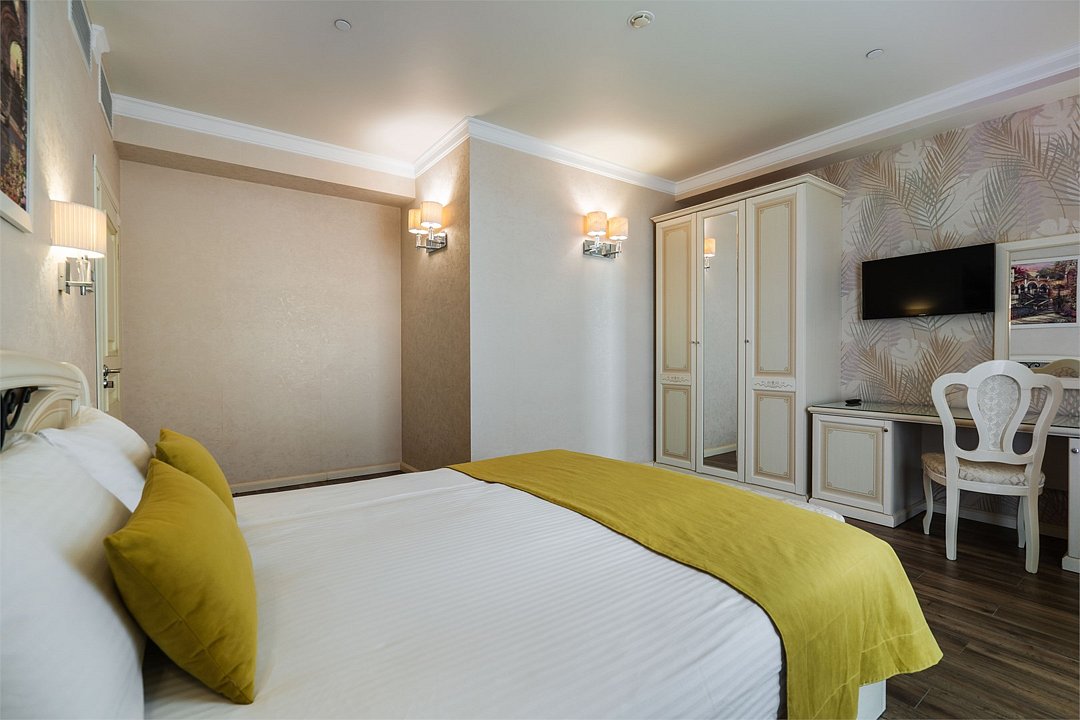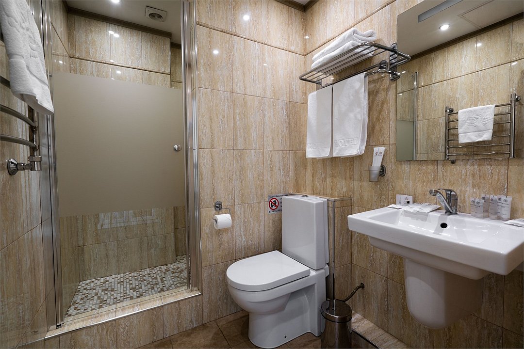 телевизор, Wi-Fi, фен, утюг, ванная комната, душевая кабина, санузел, халаты, банные полотенца, тапочки, гигиенические средства, косметические средства, балкон, двуспальная кровать, диван, тумбы, стулья, вешалки, журнальный столик, зеркало, чайный набор, сейф, чайник, унитаз, раковина, мягкая мебель, ковровое покрытие, душ, вид на город, кресло, центральное кондиционирование, стаканы, туалетный столик, стул, стол, туалетный столик, туалетные средства, туалет, сплит-система, внутренний телефон, мини-холодильник, чайная станция, уборка номера, бутилированная вода, СПА, без питомцевВ гостиничном номере