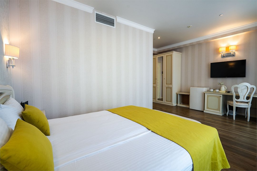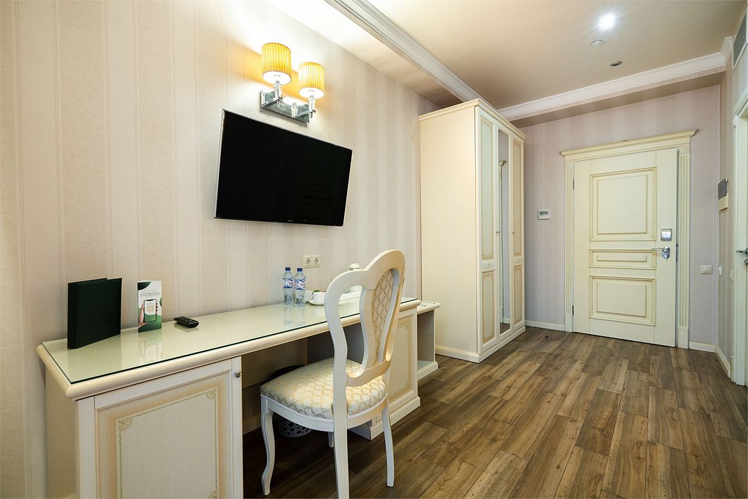 телевизор, Wi-Fi, фен, утюг, душевая кабина, санузел, халаты, тапочки, балкон, двуспальная кровать, гладильная доска, диван, кресла, тумбы, стулья, шкаф для одежды, вешалки, журнальный столик, зеркало, мебельный гарнитур, чайный набор, сейф, чайник, унитаз, раковина, мягкая мебель, питьевая вода, ковровое покрытие, душ, вид на море, кулер на этаже, кресло, стаканы, туалетный столик, стул, стол, тумба, туалетный столик, туалетные средства, туалет, сплит-система, внутренний телефон, мини-холодильник, вид на бассейн, чайная станция, уборка номера, бутилированная вода, СПА, затемняющая штора, без питомцевВ гостиничном номере