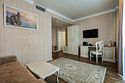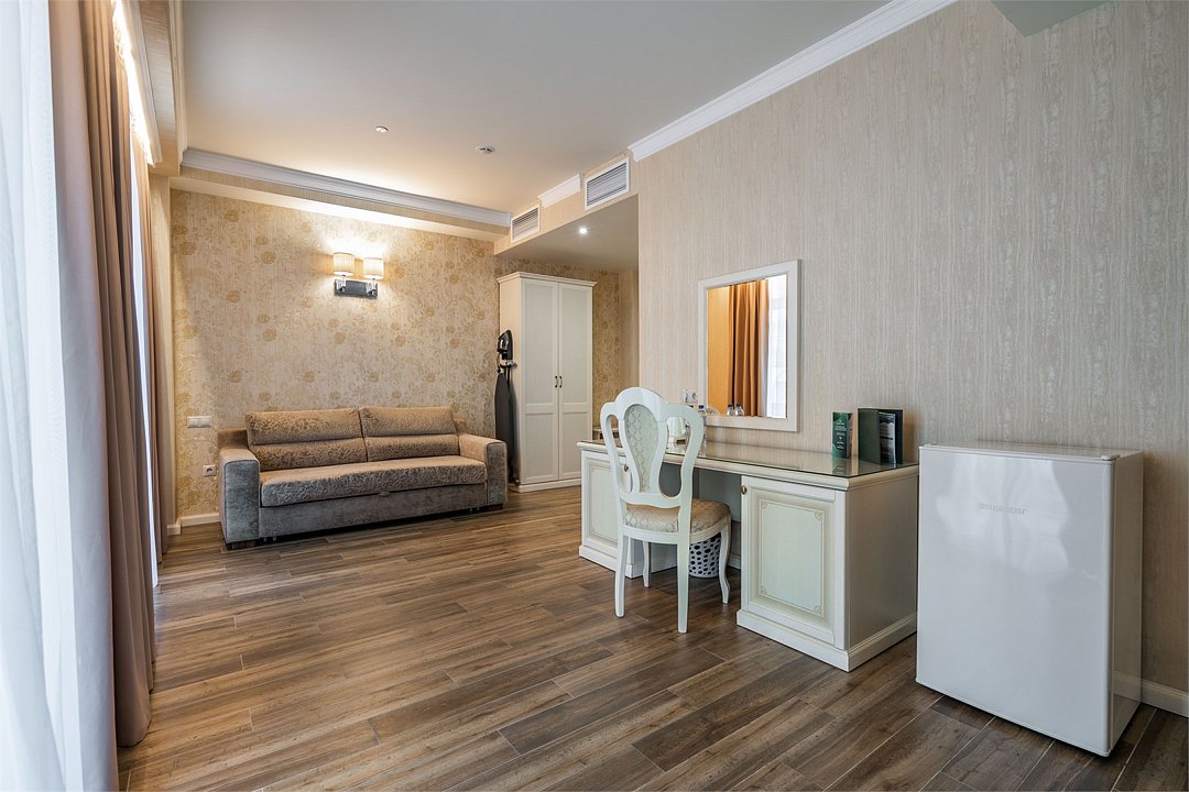 телевизор, Wi-Fi, фен, утюг, ванная комната, ванна, санузел, биде, халаты, тапочки, гигиенические средства, двуспальная кровать, гладильная доска, диван, тумбы, шкаф для одежды, вешалки, зеркало, чайный набор, сейф, чайник, унитаз, раковина, питьевая вода, гостиная зона, ковровое покрытие, душ, вид на море, кулер на этаже, кресло, стаканы, стул, стол, туалетный столик, туалетные средства, туалет, сплит-система, внутренний телефон, мини-холодильник, мансардные окна, номер для некурящих, чайная станция, уборка номера, бутилированная вода, СПА, затемняющая штора, без питомцевВ гостиничном номере