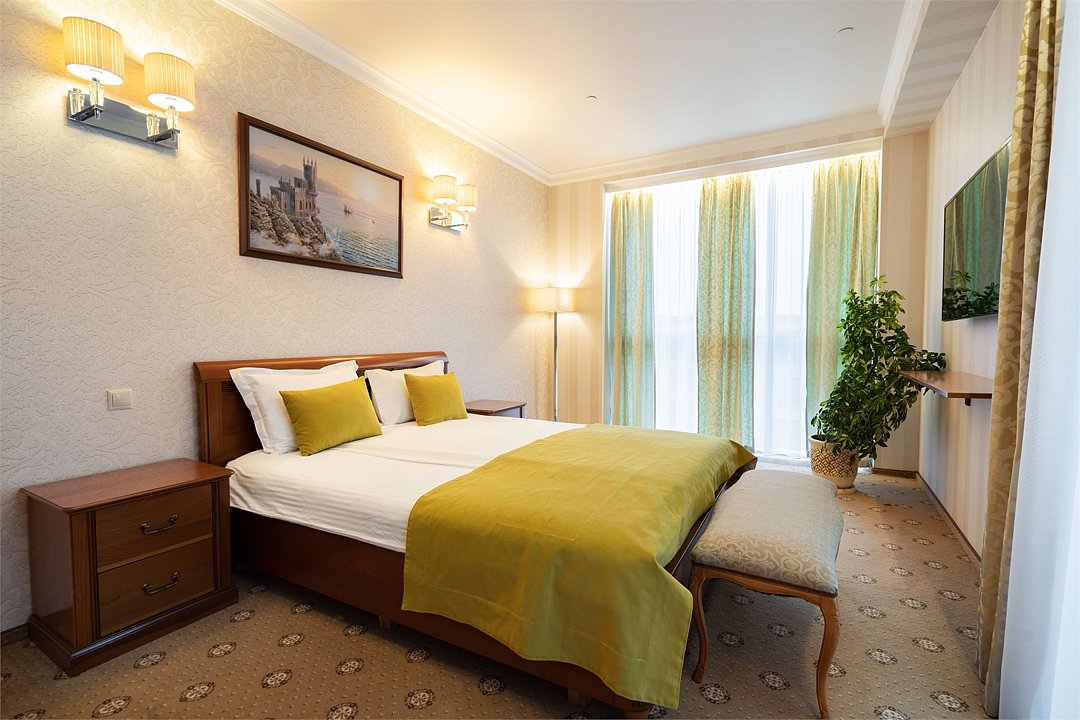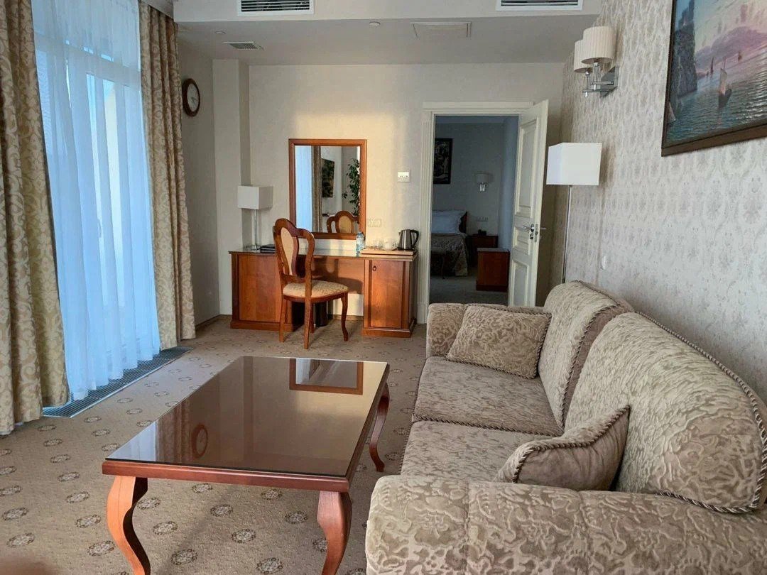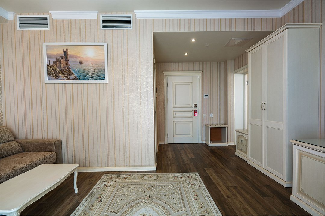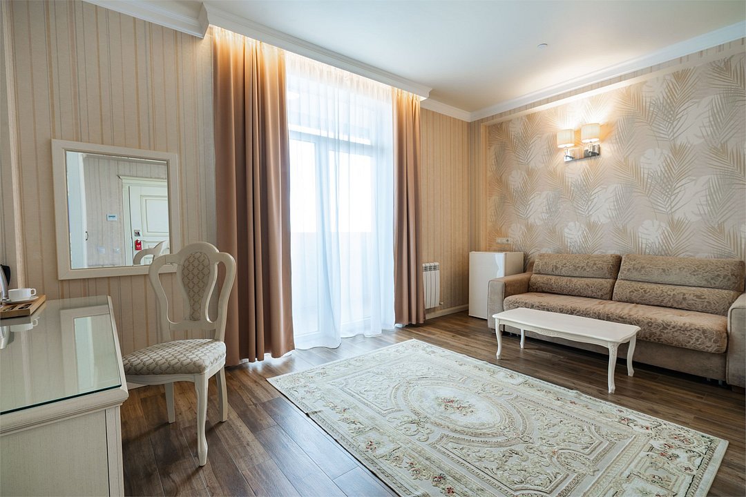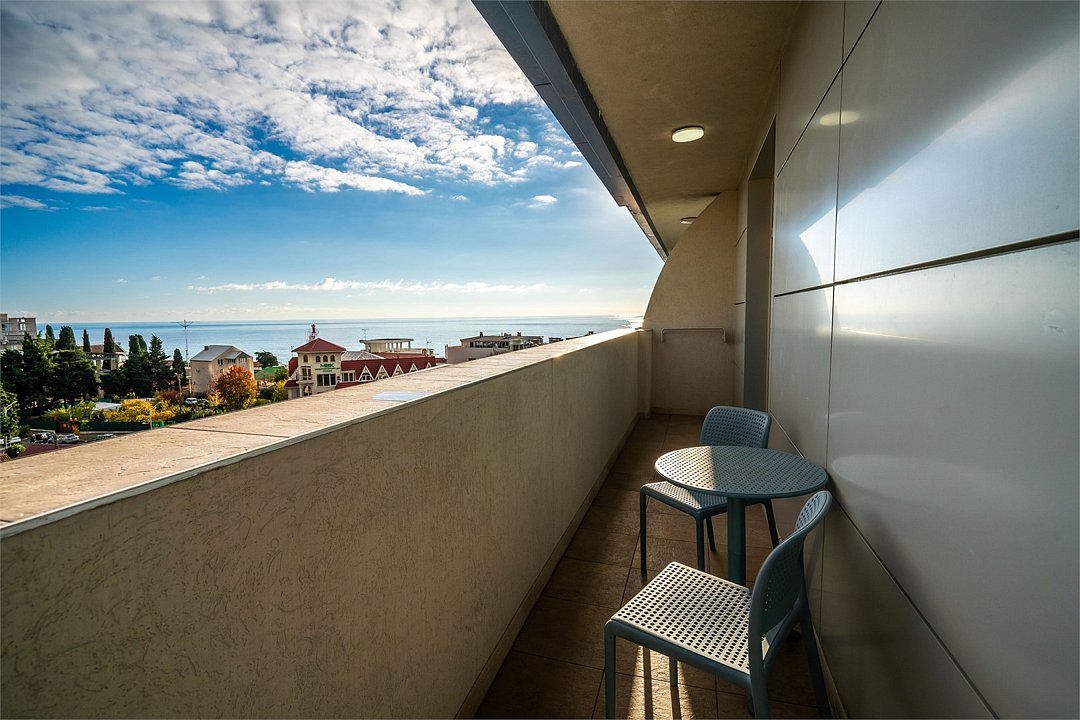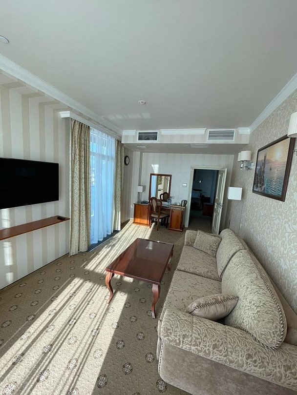 «Люкс» с видом на море и горы. Просторный, уютный двухкомнатный номер с балконом. Идеально подходит для семьи. Номер оснащен всем необходимым для комфортного проживания.Услуги и удобства