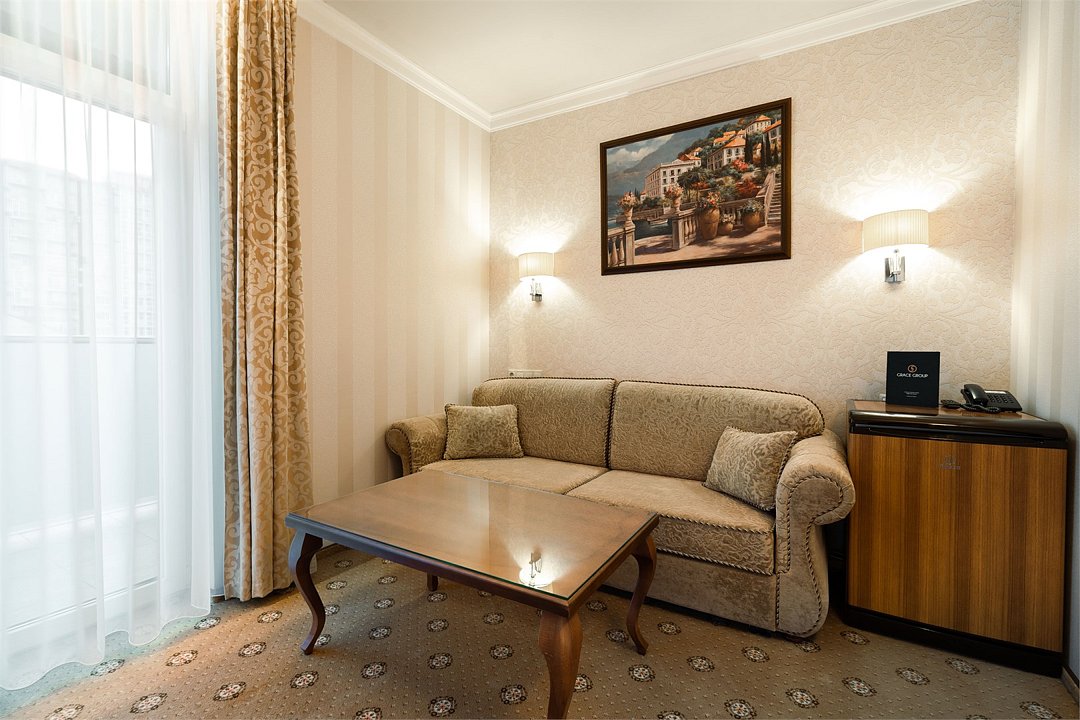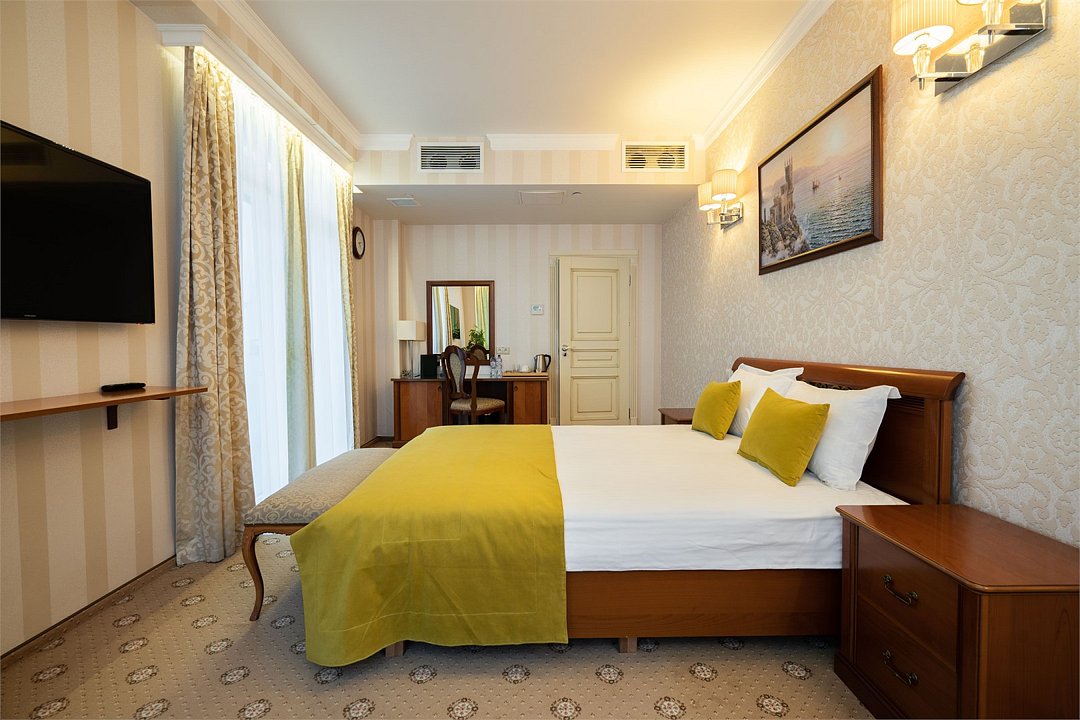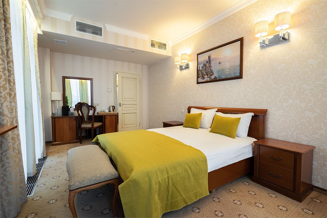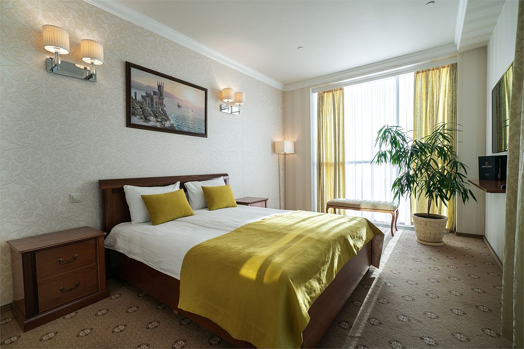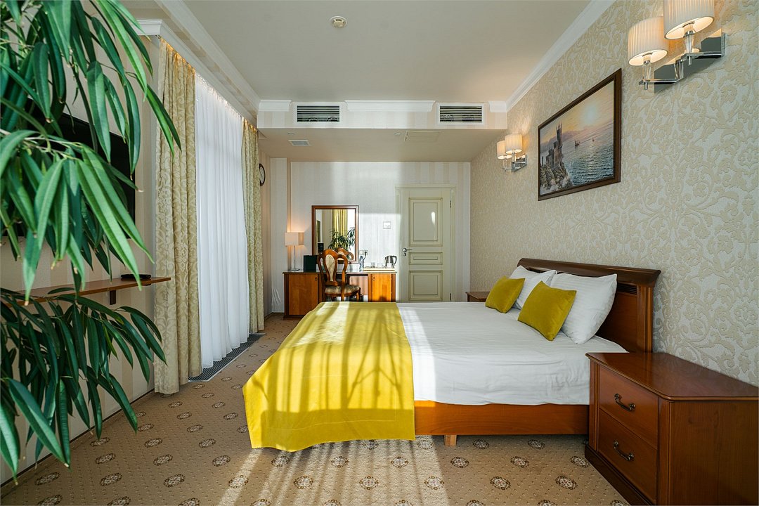 «Люкс» с видом на море и горы. Просторный, уютный двухкомнатный номер с балконом. Идеально подходит для семьи. Номер оснащен всем необходимым для комфортного проживания.Услуги и удобства
