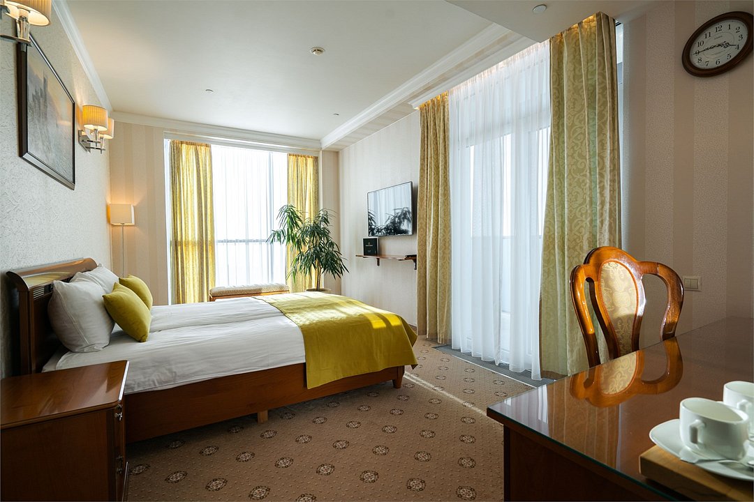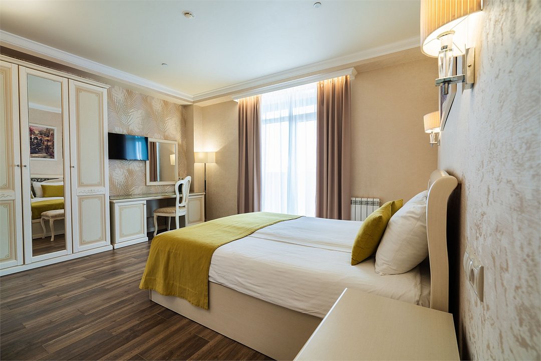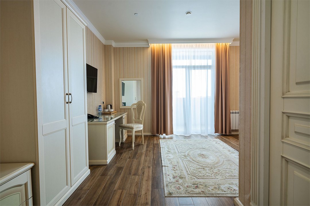 телевизор, Wi-Fi, фен, утюг, ванная комната, душевая кабина, санузел, халаты, банные полотенца, тапочки, балкон, двуспальная кровать, гладильная доска, диван, тумбы, стулья, шкаф для одежды, вешалки, журнальный столик, зеркало, комод, мебельный гарнитур, чайный набор, сейф, чайник, унитаз, раковина, ковровое покрытие, отопление, душ, вид на город, кулер на этаже, стаканы, туалетный столик, стул, стол, тумба, туалетный столик, туалетные средства, туалет, сплит-система, внутренний телефон, мини-холодильник, вид на горы, чайная станция, уборка номера, бутилированная вода, СПА, затемняющая штора, без питомцевВ гостиничном номере