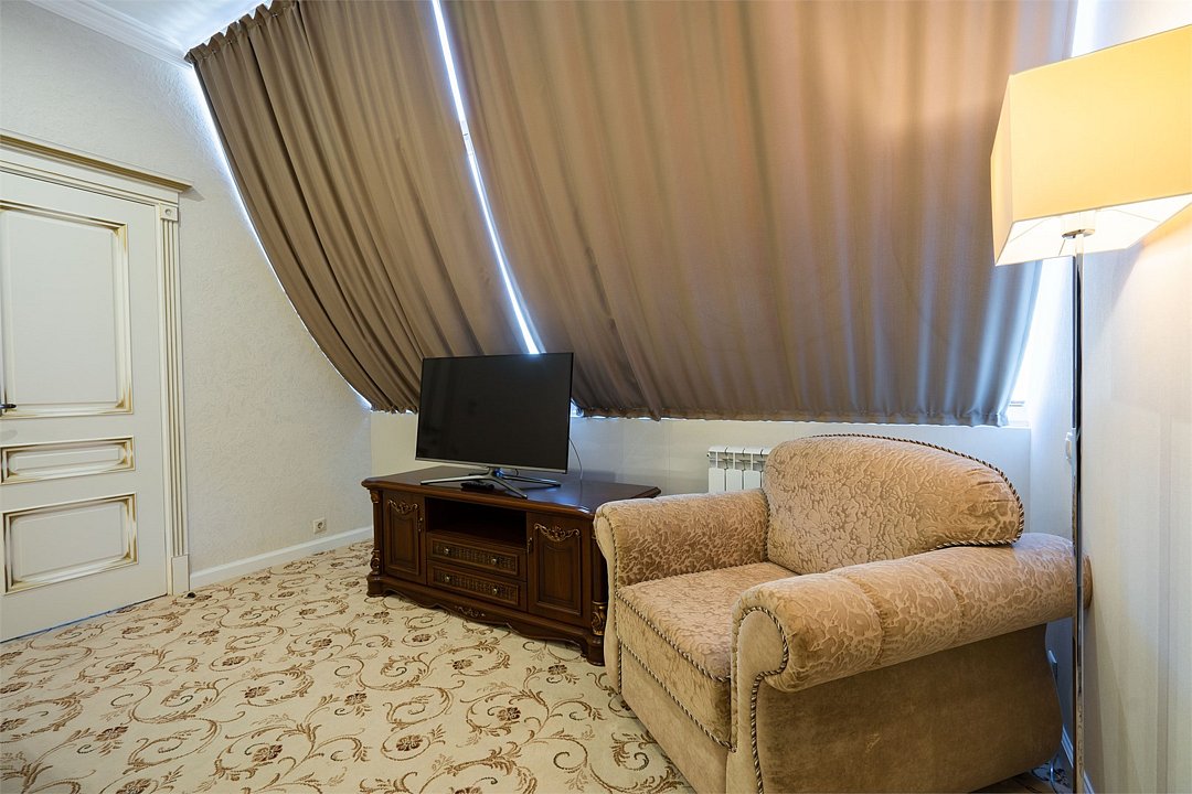 "Премиум Люкс Мансарда"- оснащен всем необходимым для комфортного отдыха.Услуги и удобства