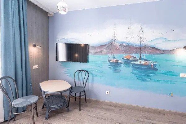 Спальный корпус представляет собой двухэтажное здание, состоящее из 6 номеров «студия» различной конфигурации, двух холлов и кухонной зоной. Внутренний интерьер корпуса выполнен в морской тематике. Каждый номер и холлы корпуса оформлены индивидуальной настенной роспись.