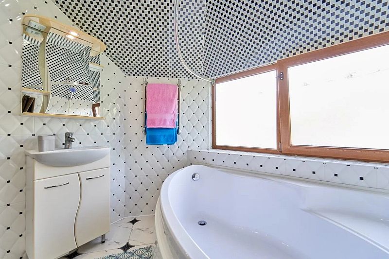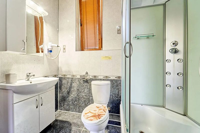 Индивидуальная ванная комната: джакузи, раковина, туалет. В стоимость входит: постельное белье, полотенца, мыло.