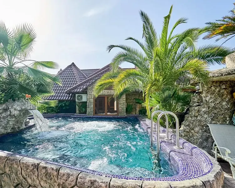 На территории гостевого дома «Garden Villa» вас ожидает открытый бассейн с кристально чистой морской водой, температура которой создает идеальные условия для отдыха. Рядом с бассейном расположены шезлонги, где вы можете расслабиться под ласковыми лучами солнца, наслаждаясь каждым мгновением летнего дня.