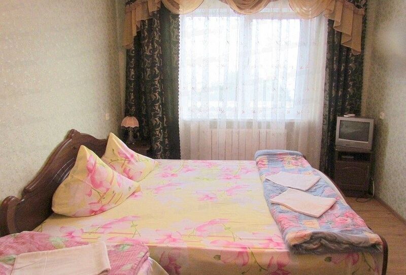 В номере: двуспальная и односпальная кровати, кресло, прикроватные тумбочки, туалетный столик, зеркало, шкаф, сплит-система, холодильник, телевизор, электрический чайник.