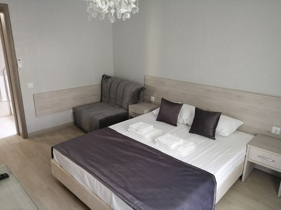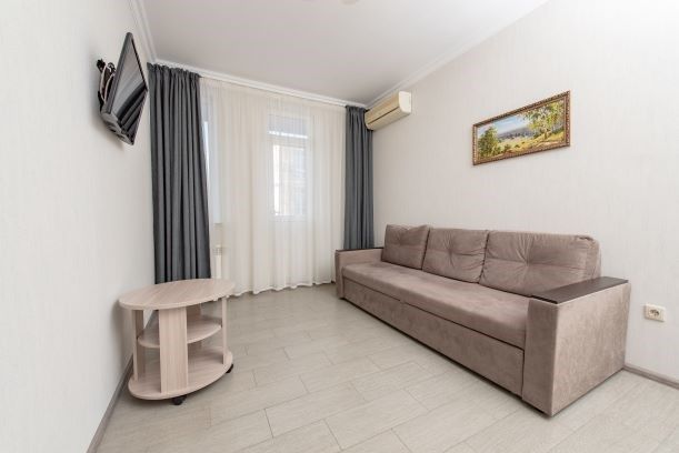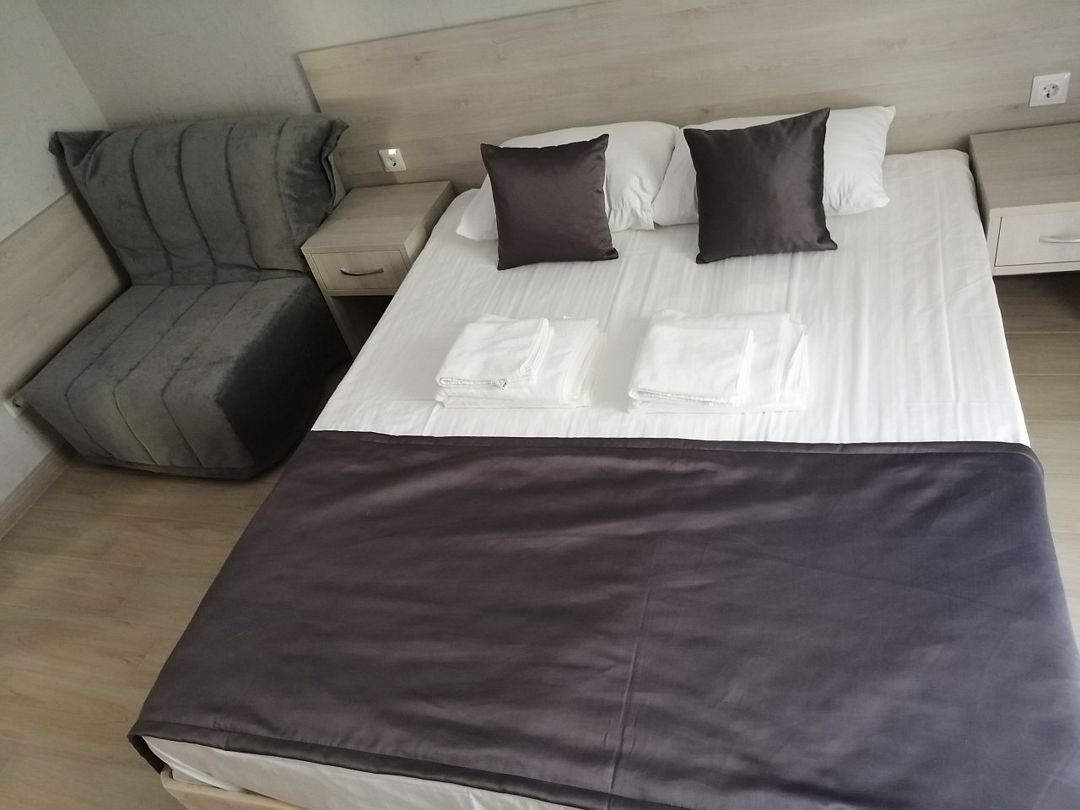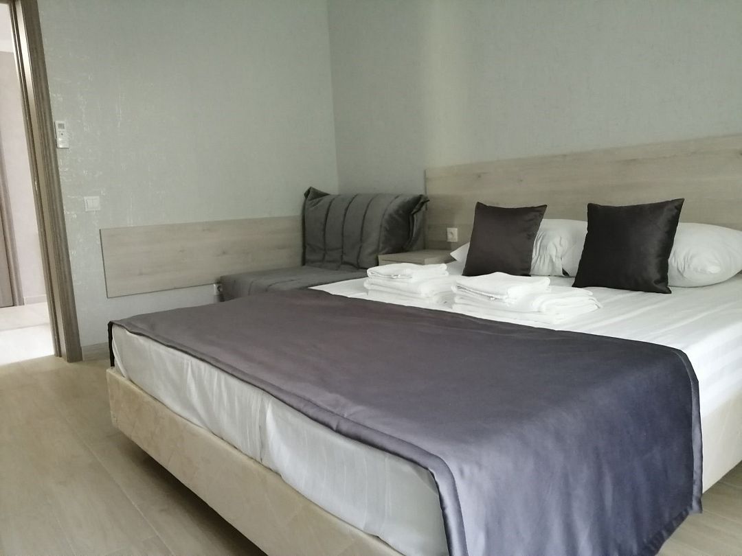 Комфортный гостевой номер с 2-мя комнатами, без балкона. В одной комнате - двуспальная кровать, во второй комнате - раскладной диван. Ванная комната: душ/душевая кабина, санузел, фен, полотенца.Услуги и удобства
