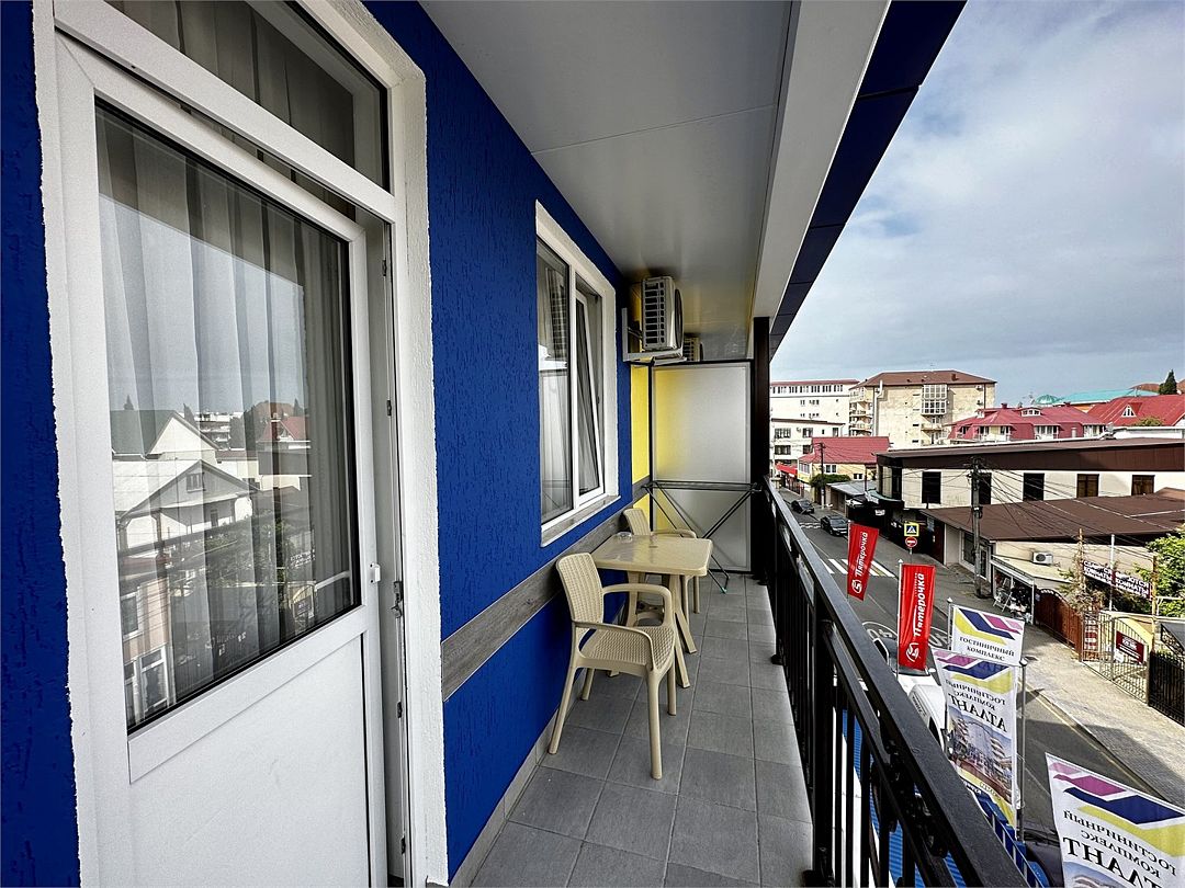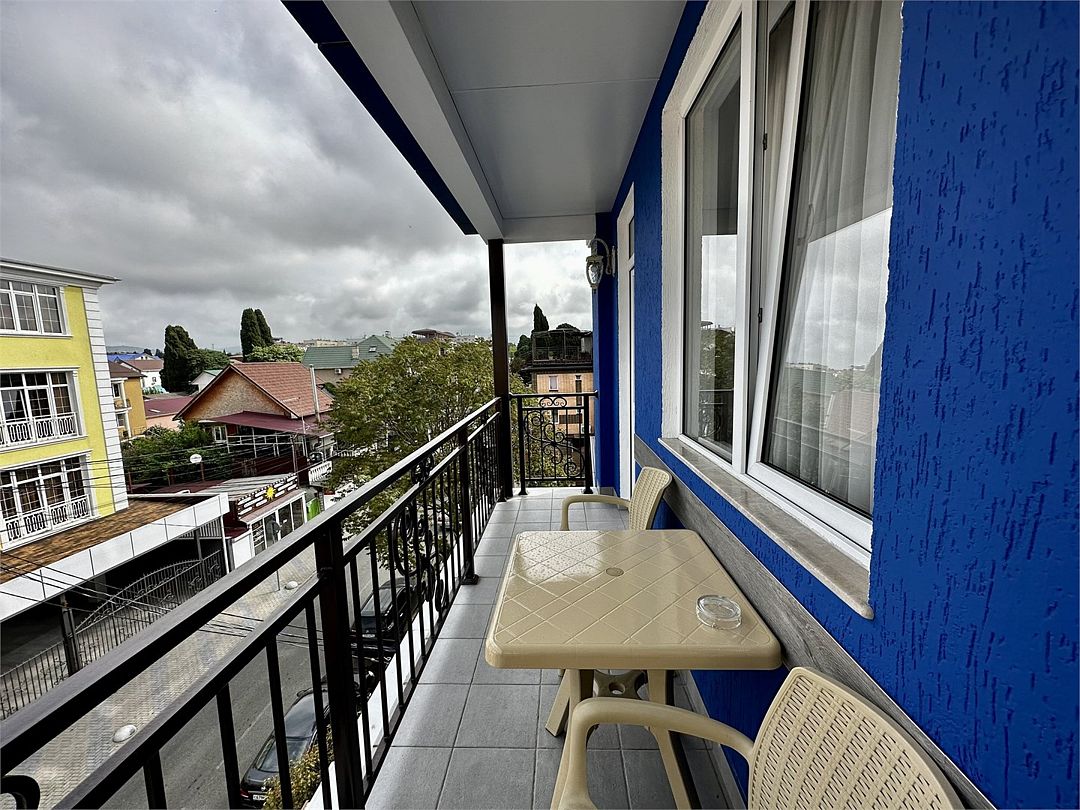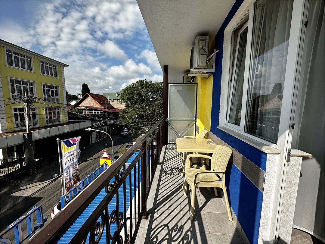 Трехместный, однокомнатный номер с балконом, санузел отдельный в номере (туалет и душ), двуспальная кровать с прикроватными тумбочками, раскладное кресло, шкаф, туалетный столик, телевизор, холодильник, чайник Общая площадь номера от 13 кв. м.Услуги и удобства