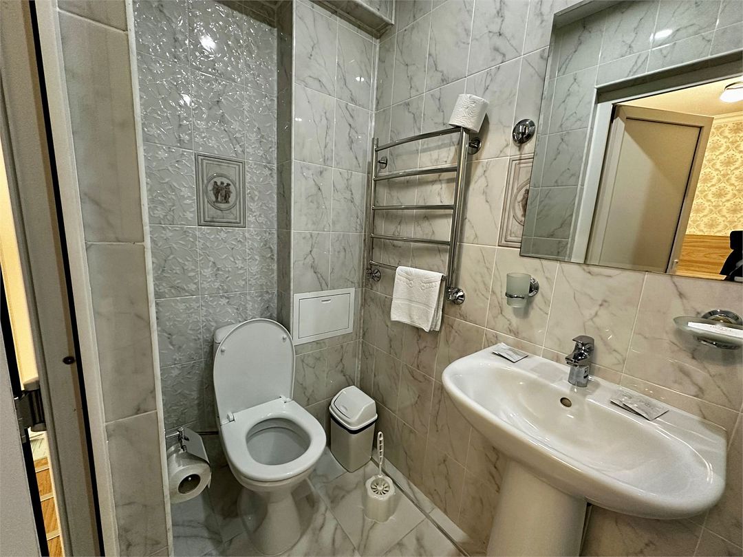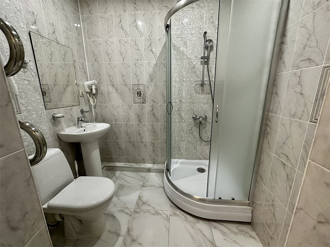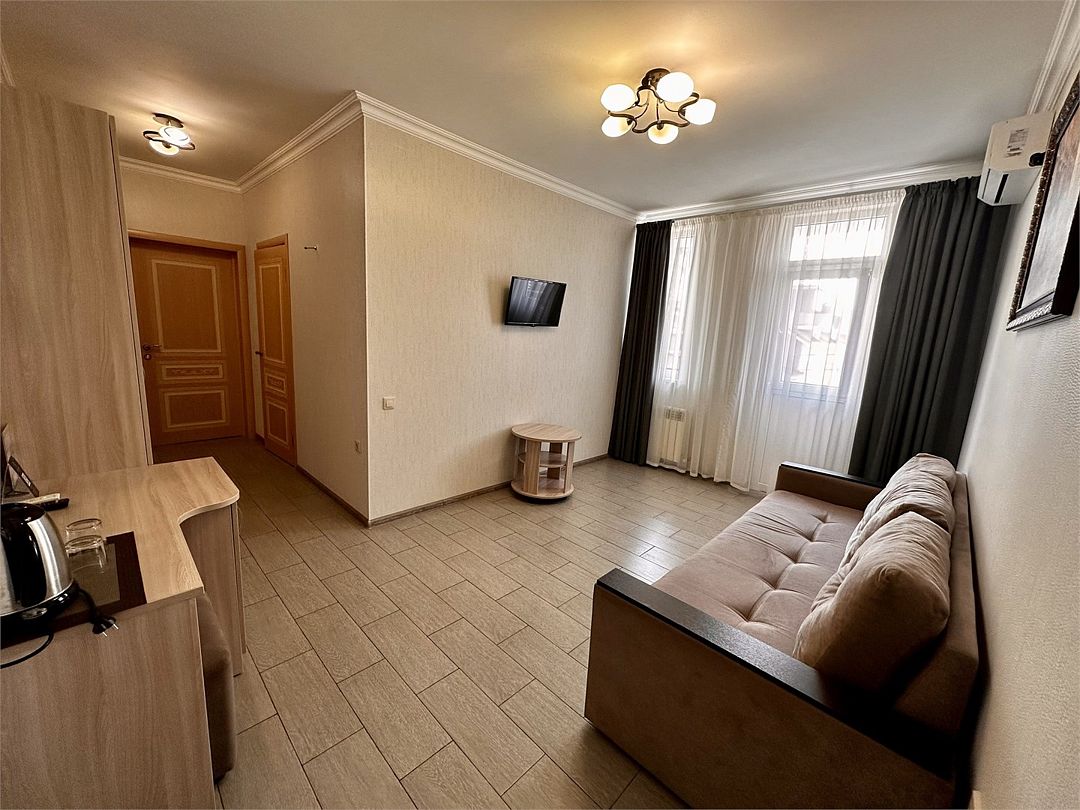 Wi-Fi, кондиционер, фен, душевая кабина, санузел, банные полотенца, диван, шкаф для одежды, вешалки, зеркало, унитаз, душ, вид на город, вид во двор, тумба, туалетный столик, туалет, цифровое тв, раскладной диван, телевизор с плоским экраном, мини-холодильникВ гостиничном номере