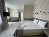 Двухкомнатный номер: спальня и гостинная, совмещенная с кухней. Спальня: французская кровать с прикроватными тумбочками, шкаф, туалетный столик, телевизор. Гостиная с кухней: раскладное кресло, набор кухонной мебели, обеденный стол со стульями, микроволновая печь, холодильник. Ванная комната: душ, фен, тапочки, стиральная машина.Услуги и удобства